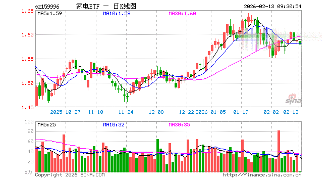 家电ETF(159996)业绩比较基准为中证全指家用电器指数收益率,管理人为国泰基金管理有限公司,基金经理为苗梦羽,成立(2020-02-27)以来回报为58.84%,近一个月回报为-1.90%。
