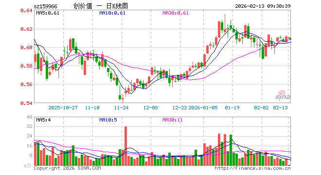2月13日,创业板价值ETF(159966)开盘跌0.16%,报0.610元。创业板价值ETF(159966)重仓股方面,宁德时代开盘跌0.07%,汇川技术跌0.40%,迈瑞医疗跌0.02%,温氏股份涨0.19%,阳光电源跌1.31%,同花顺涨0.26%,爱尔眼科跌0.19%,三环集团跌1.32%,捷佳伟创跌0.94%,晶盛机电跌1.25%。