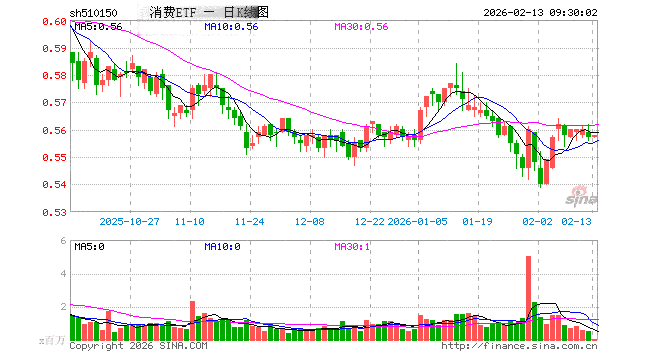 2月13日,消费ETF(510150)开盘涨0.00%,报0.557元。消费ETF(510150)重仓股方面,贵州茅台开盘涨0.00%,恒瑞医药涨0.03%,药明康德跌0.01%,伊利股份涨0.34%,福耀玻璃跌0.50%,赛力斯跌0.01%,海尔智家跌0.04%,中国中免涨0.32%,山西汾酒涨0.00%,上汽集团跌0.14%。