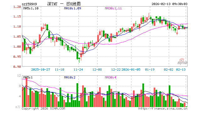 2月13日,TMT50ETF(159909)开盘跌0.36%,报1.092元。TMT50ETF(159909)重仓股方面,中际旭创开盘跌0.66%,新易盛跌1.02%,立讯精密跌1.03%,北方华创涨1.00%,胜宏科技跌0.65%,京东方A跌0.47%,中兴通讯跌0.88%,海康威视跌0.28%,东山精密跌1.68%,沪电股份跌0.61%。