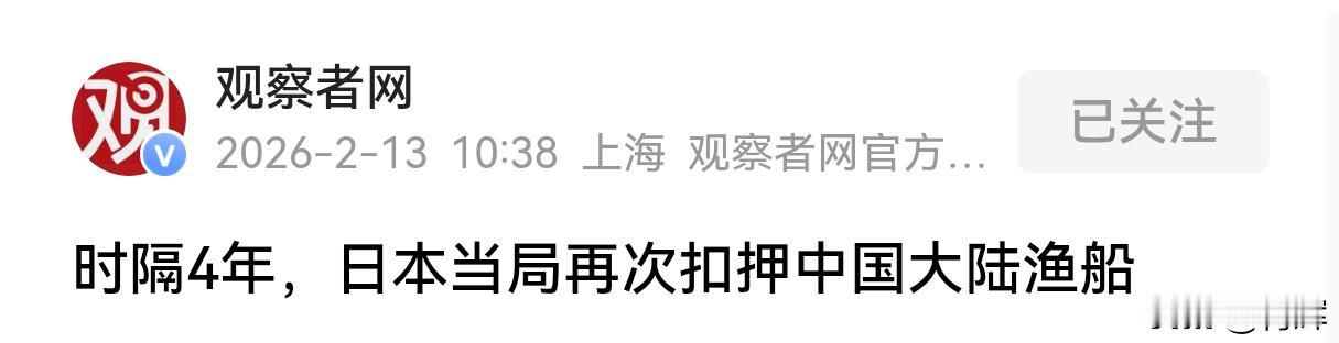 根本不在乎!中国大使话音未落,日本强行扣押一艘中国渔船,抓了中国船长 2月10号