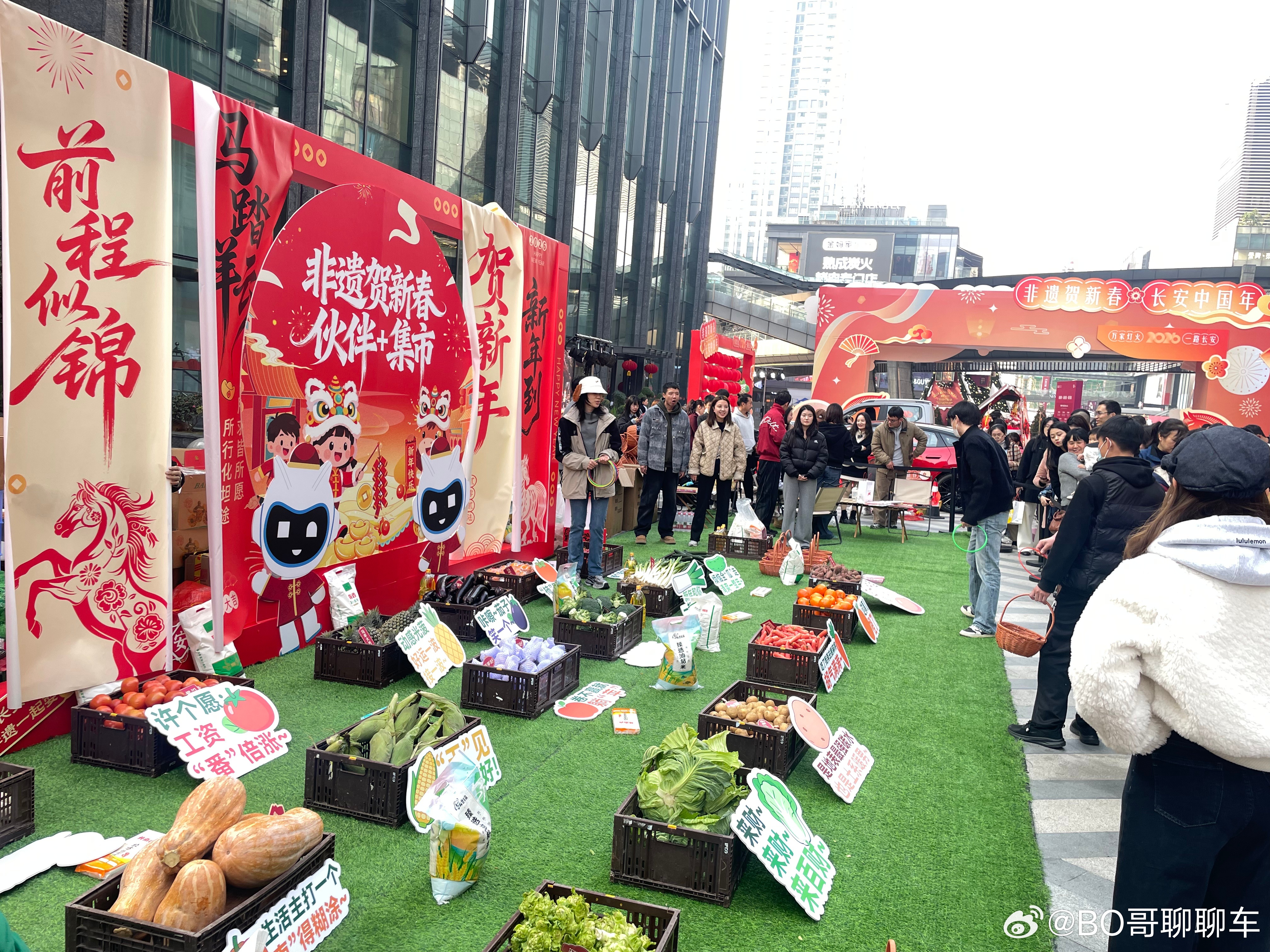 逛商场,碰到长安搞的线下活动,过年的氛围就来了,套圈、非遗,甚至还有蔬菜、粮米油
