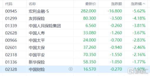 保险股低迷,中国人寿跌超3%,中国太平、中国太保、中国平安、新华保险等跟跌。