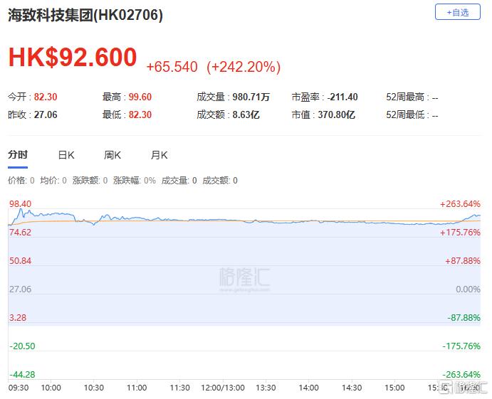 “图计算与图数据库企业”海致科技集团首日在港上市,涨超242%,报92.6港元。