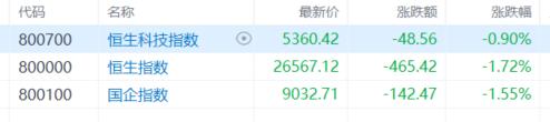 2月13日,受隔夜美股大跌影响,港股三大指数集体下跌,恒生科技指数跌0.9%,恒生指数、国企指数分别下跌1.72%及1.55%。
