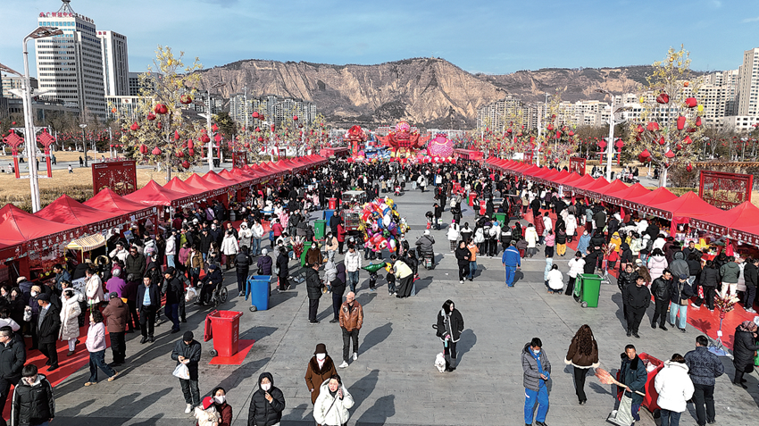 崆峒区“国潮贺新春·寻味崆峒年”年货大集现场(无人机照片)