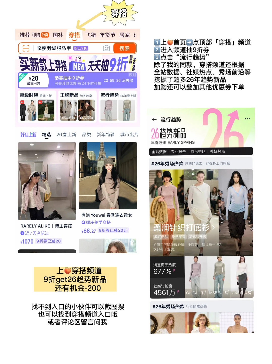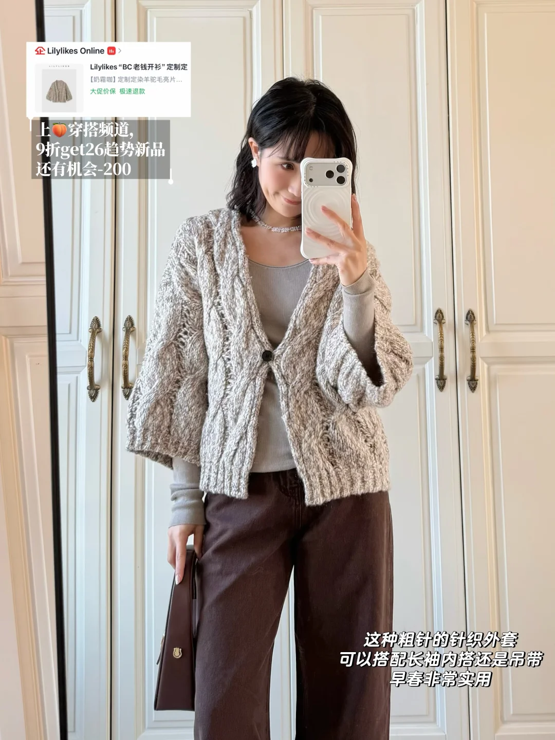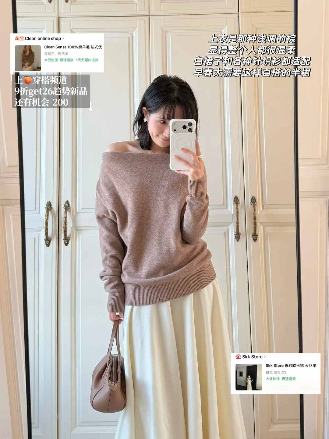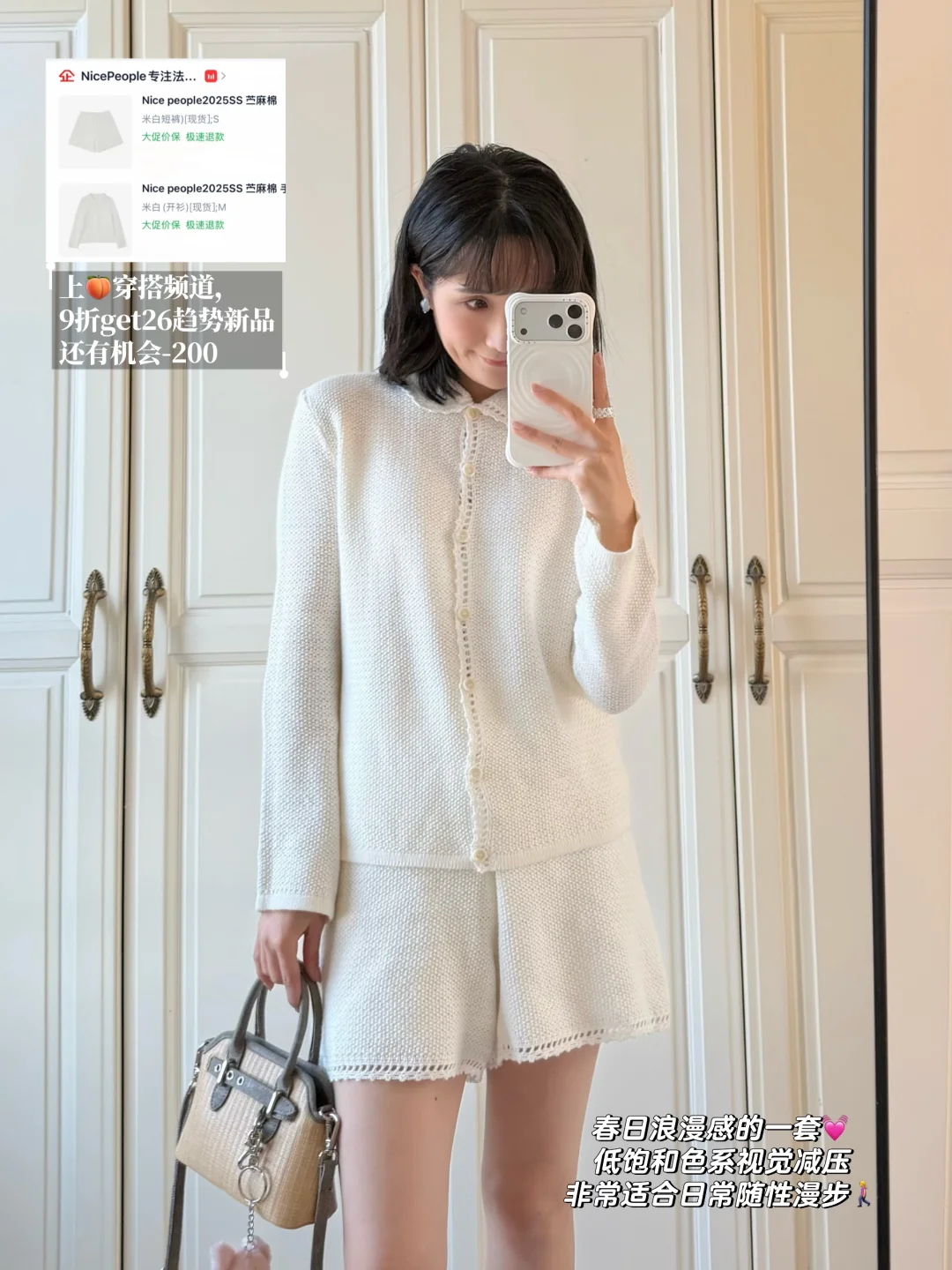 分享为春天通勤准备的一些美丽织物~ 这期疗愈通勤风穿搭单品以低饱和度的""自然色谱""作为主色调 通过柔软材质和微宽松版型,让身体在通勤路上就能提前进入""舒适区"" 💫Nice people开衫短裤套装 开衫采用微宽松剪裁,平衡修饰身形比例 搭配高腰短裤拉长腿部线条,兼顾利落与优雅 米白、燕麦等低饱和色系视觉""减压"" 苎麻棉混纺透气性强, 让通勤路途成为一场轻松舒适的""城市漫步"" Clean Sense荡领针织衫 荡领设计将法式浪漫与职场穿搭的实用巧妙平衡 绵羊毛材质赋予单品云朵般的软糯触感 从触觉层面缓解通勤的疲惫感 Skk Store 重工针织半身裙 天丝羊毛的温润质感与重工裙摆的流动美学融合 超大裙摆是设计的灵魂,行动轻松不束缚 搭配简约针织衫也能在干练中透出柔美 Lilylikes-BC老钱开衫 以“老钱风”的低调质感为底色,自带沉静气质 立体绞花纹理增强视觉层次,V领拉长脖颈线条, 内搭真丝衬衫或简约吊带,轻松平衡“职场得体”与“松弛感” · 上🍑穿搭频道,点击流行趋势, 除了本期的推荐单品,根据全站数据、专业报告、前沿秀场、社媒热点等 穿搭频道还挖掘了更多26趋势新品, 现在下单9折get,还有机会-200 找不到入口的小伙伴,可以直接试试截图搜, 也可以找到穿搭频道入口哦~或者评论区留言问我
