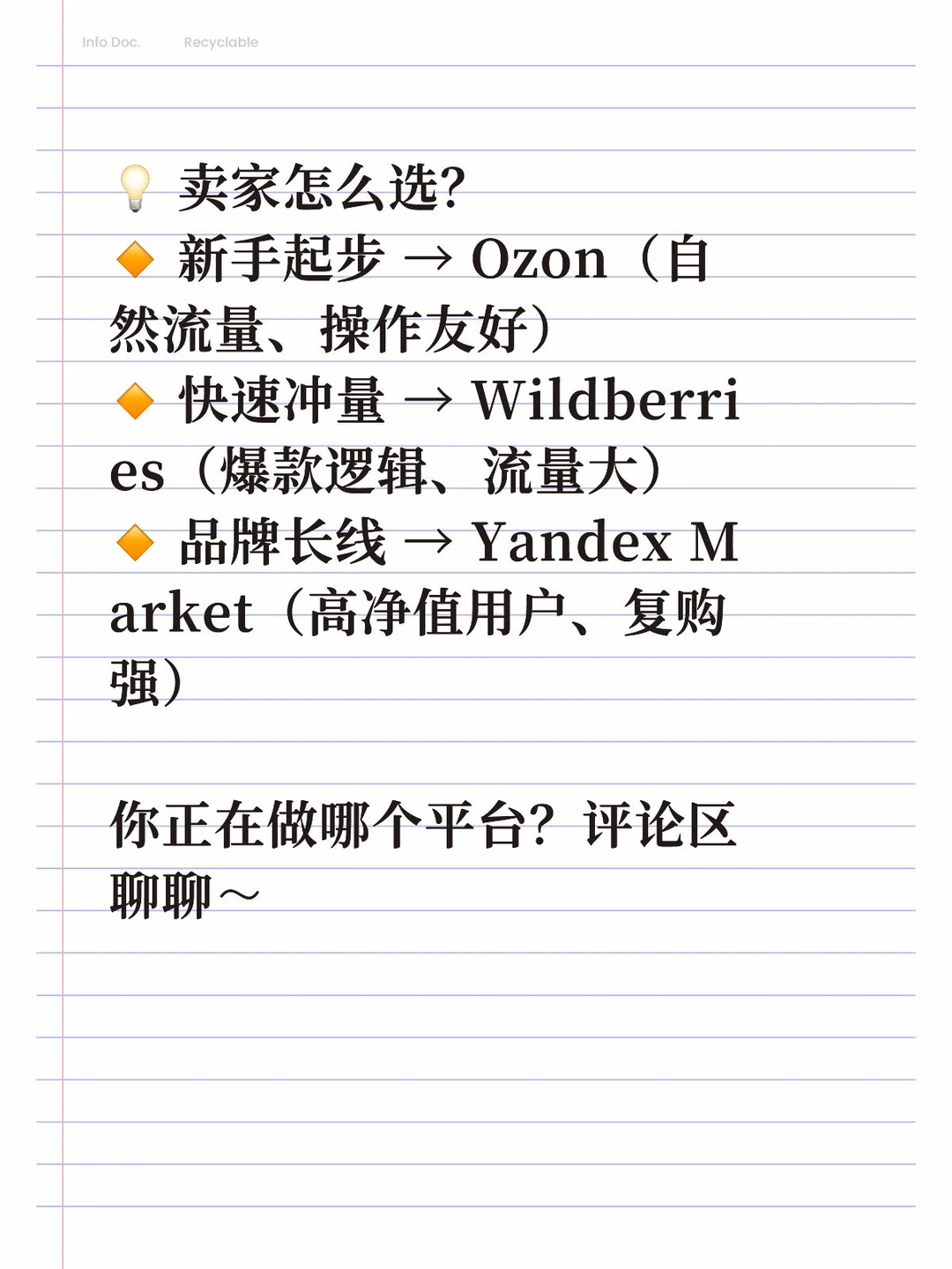 Wildberries、Ozon、Yandex Market 一图看懂!别再傻傻跟风了,跨境卖家必看🔥