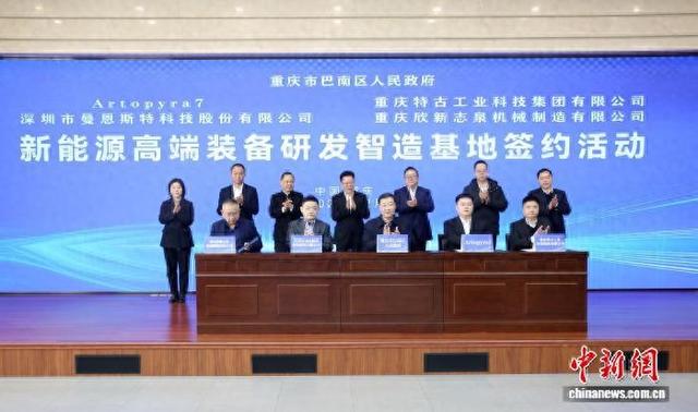中新网重庆2月13日电(记者钟旖)新春将至,重庆市巴南区招商步履不停。13日,巴南区与4家企业签署合作协议,将携手打造新能源高端装备研发智造基地项目。