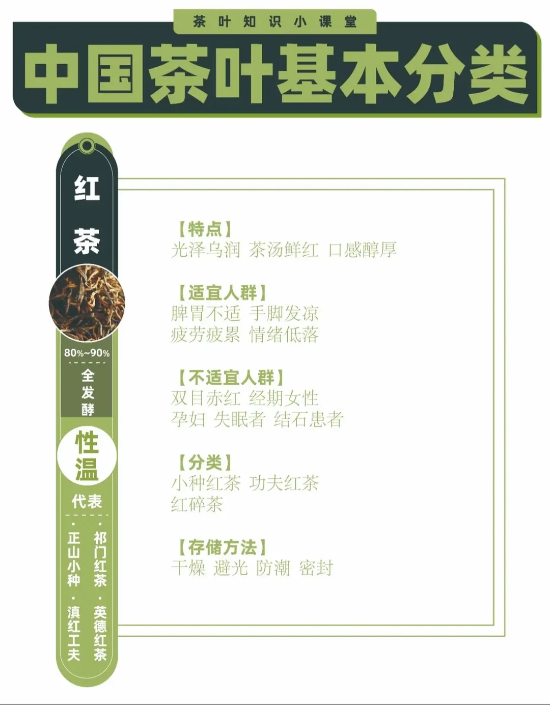 红茶(全发酵):如正山小种、祁门红茶,甜醇温和,适合调饮。