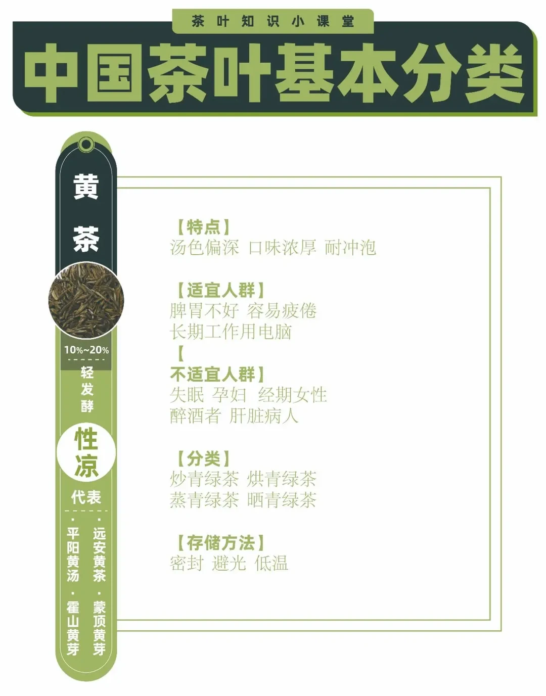 黄茶(轻发酵):如君山银针,闷黄工艺形成"黄汤黄叶"。