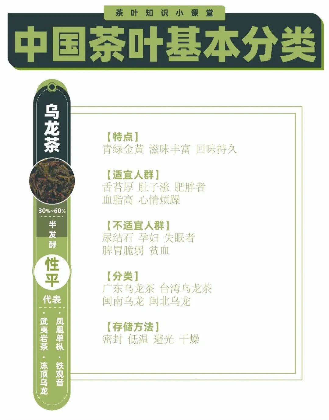 青茶(乌龙茶)(半发酵):如铁观音、大红袍,香气高扬,工艺复杂。
