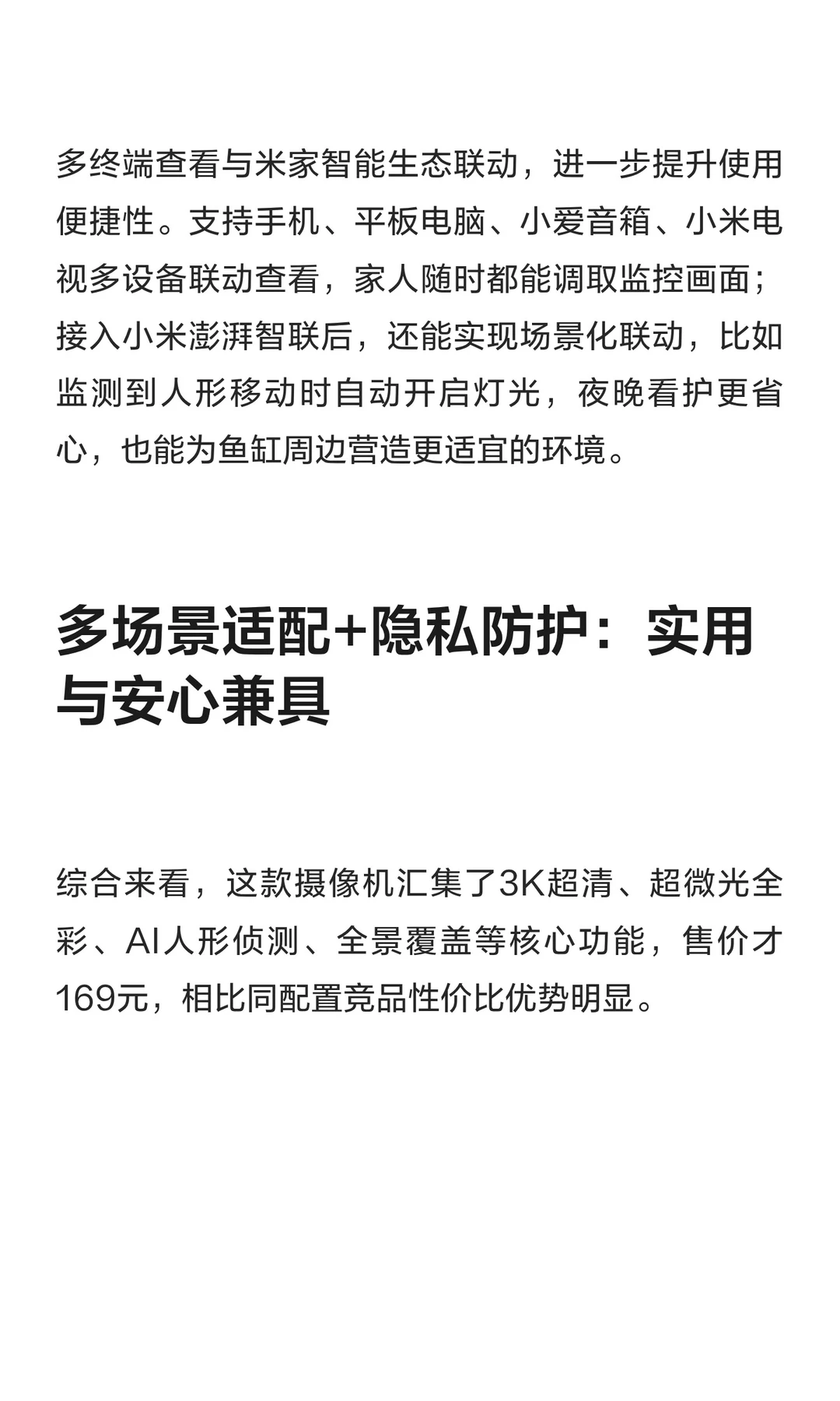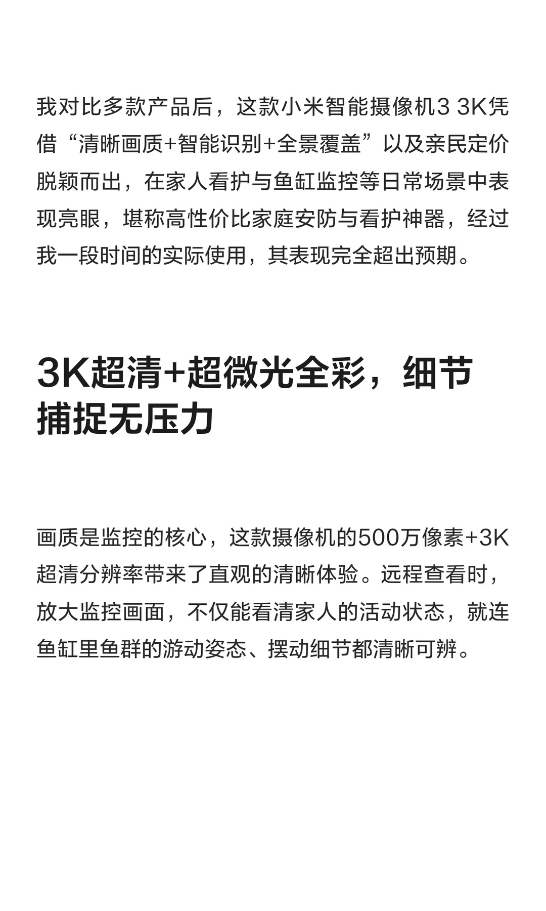 作为经常出差的打工人,既要牵挂家人的日常起居,又要惦记精心养护的鱼缸,一款靠谱的智能摄像机成了刚需。在家用智能摄像领域,小米始终以场景适配性和使用便捷性打动用户。 我对比多款产品后,这款小米智能摄像机3 3K凭借“清晰画质+智能识别+全景覆盖”以及亲民定价脱颖而出,在家人看护与鱼缸监控等日常场景中表现亮眼,堪称高性价比家庭安防与看护神器,经过我一段时间的实际使用,其表现完全超出预期。 小米智能摄像机3 小米摄像头小米智能摄像机3 3K