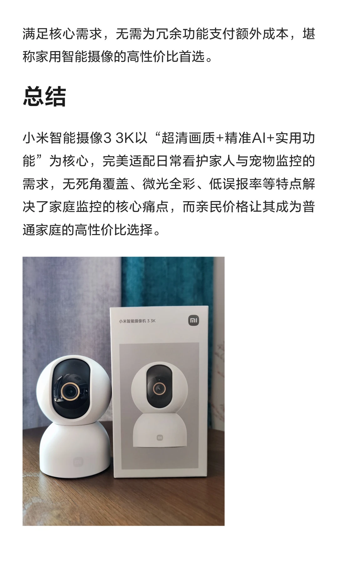 小米智能摄像机3 3K实测:画质与AI双优之选
