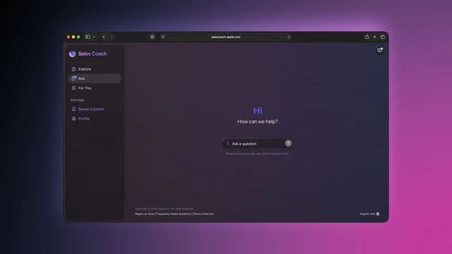 与“SEED”相比,“SalesCoach”将带来两项关键变化。首先,新版应用将采用全新的LiquidGlass设计语言。其次,苹果还计划在后续版本中加入一项AI聊天机器人功能,用于为门店员工提供销售建议与产品信息支持。