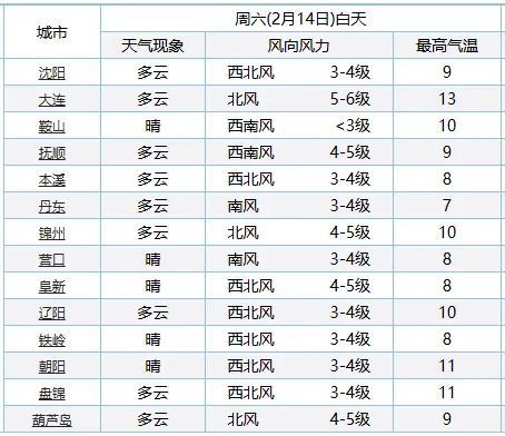 14日8时到20时,丹东地区有阵雨,其他地区多云。