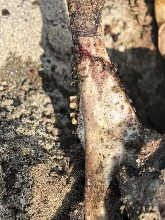 经科研专家现场细致勘验,该水生动物遗体头部缺失,躯干无明显外伤,且已出现明显腐烂迹象。专家通过辨识遗体胸鳍形态、牙齿特征,结合生殖器形态及体型大小等关键形态特征综合研判,确认该搁浅死亡个体为成年雄性印太江豚(国家二级保护水生野生动物)。勘验期间,科研人员已对江豚遗体进行规范采样,所采样本将用于环境毒理学等相关科研分析,为后续溯源其死亡原因提供科学支撑。