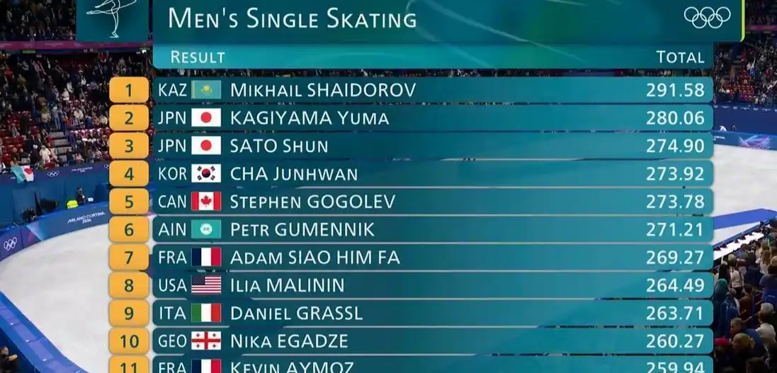 大热必死!米兰冬奥会男单自由滑,赛前最被看好的美国选手马里宁最后一位出场,他出现多次失误,最终仅排名第八位。哈萨克斯坦选手米哈伊尔·萨多洛夫总分291.58获得金牌,这是哈萨克斯坦队本届冬奥会获得的首金,也是哈萨克斯坦历史首枚冬奥会花滑金牌。两位日本选手键山优真获得银牌,佐藤骏获得铜牌。厚蓄显锋芒 马里宁自由滑重大失误