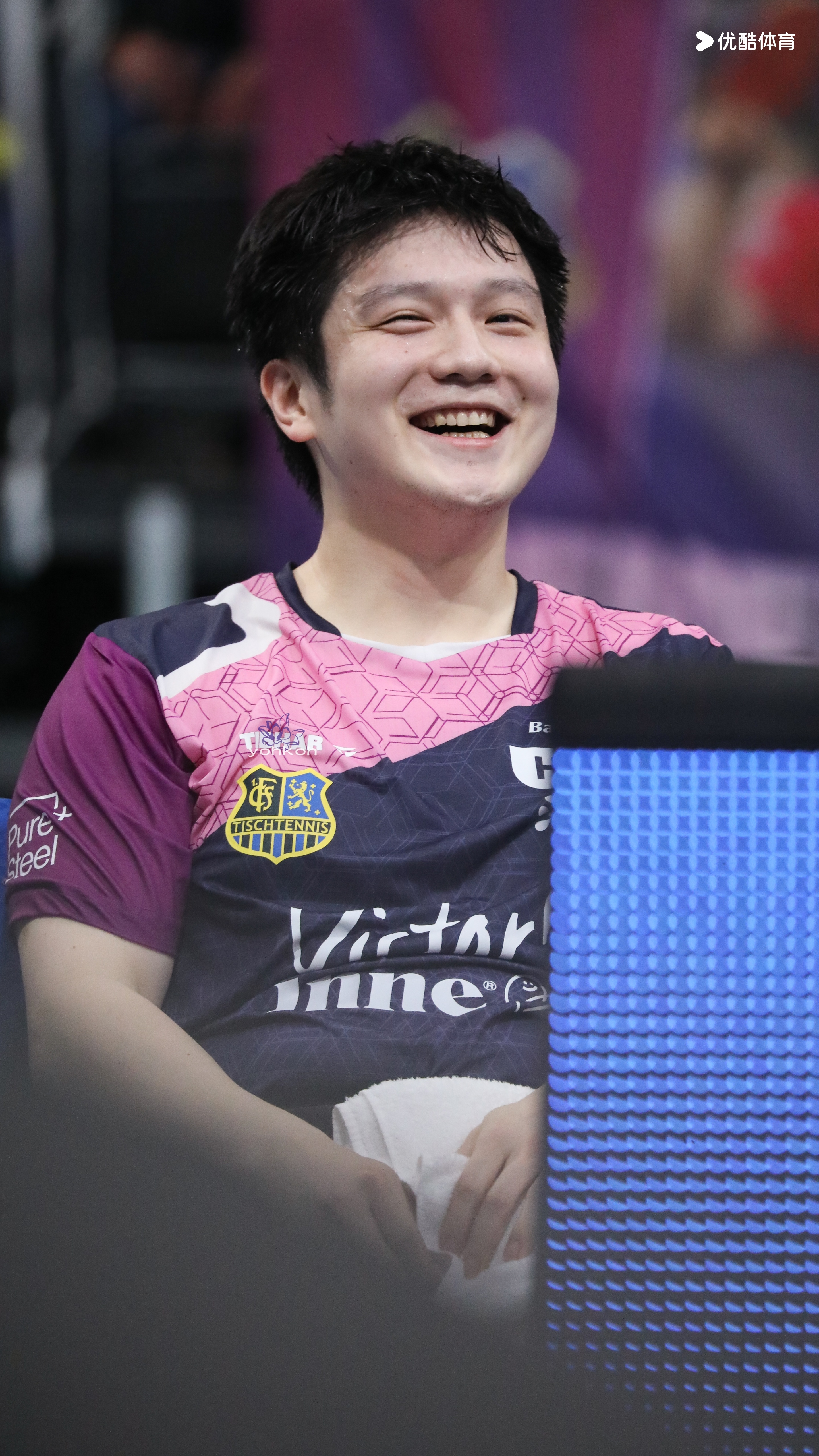 樊振东乒乓球欧冠联赛莫雷加德秀樊振东大头照 幸福是每一次见到你