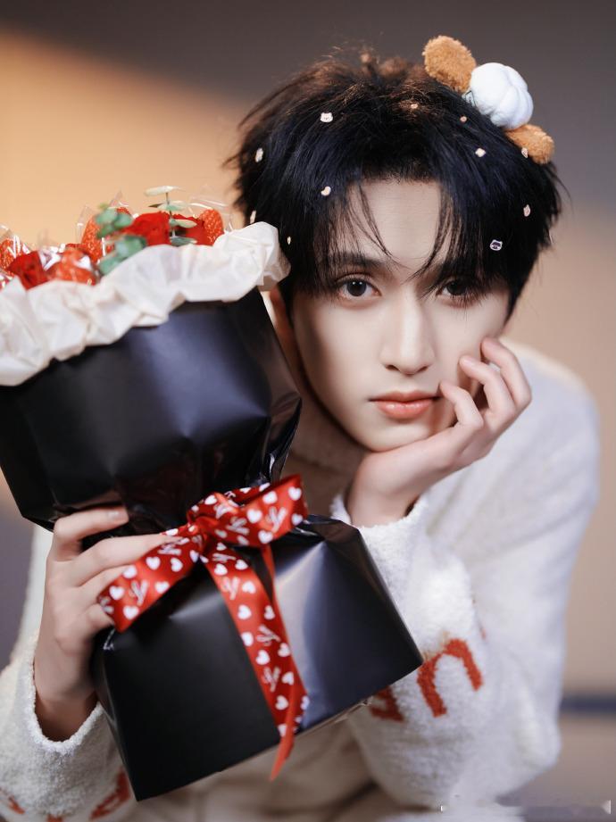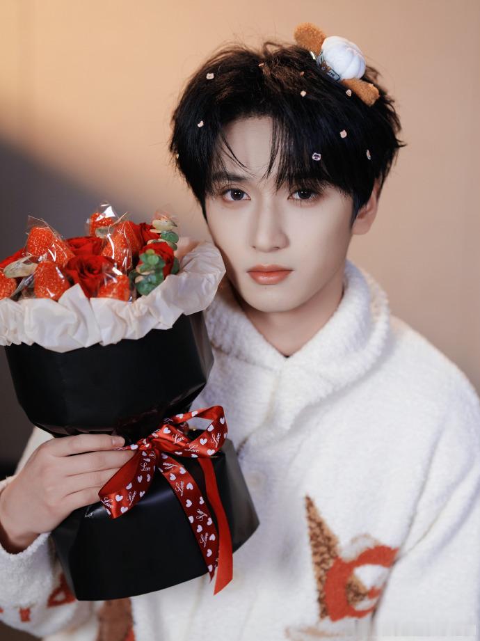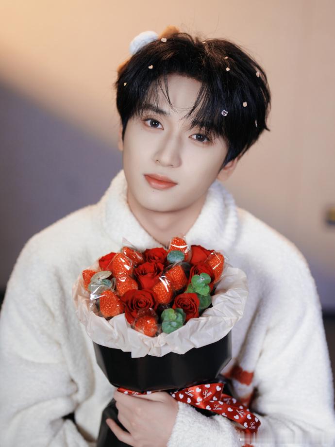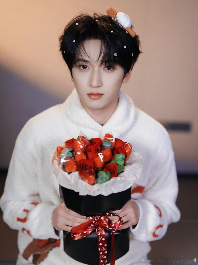 严浩翔吃点甜的严浩翔草莓花草莓花束、小熊男友、严浩翔——情人节三重暴击!这甜度,