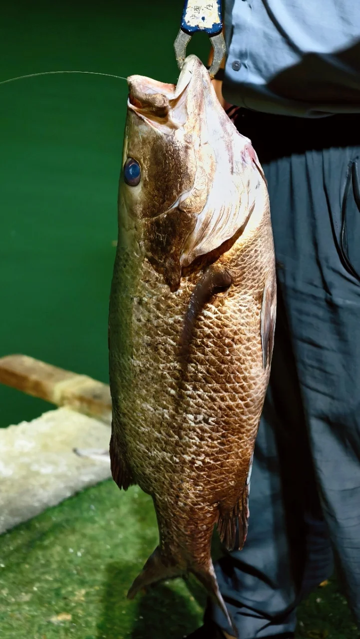 钓场临水而钓,背后是热带风情的绿树,随便一拍都是“海钓达人”既视感。和巨鱼同框秒变海岛大片拍摄地。夜晚垂钓另有一番风味,灯光下的水面泛着幽绿,钓上鱼的瞬间闪光灯一按,氛围感直接拉满!