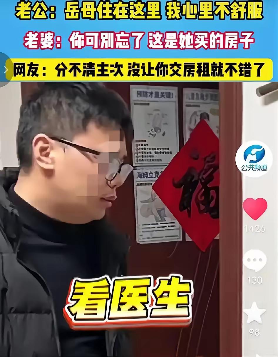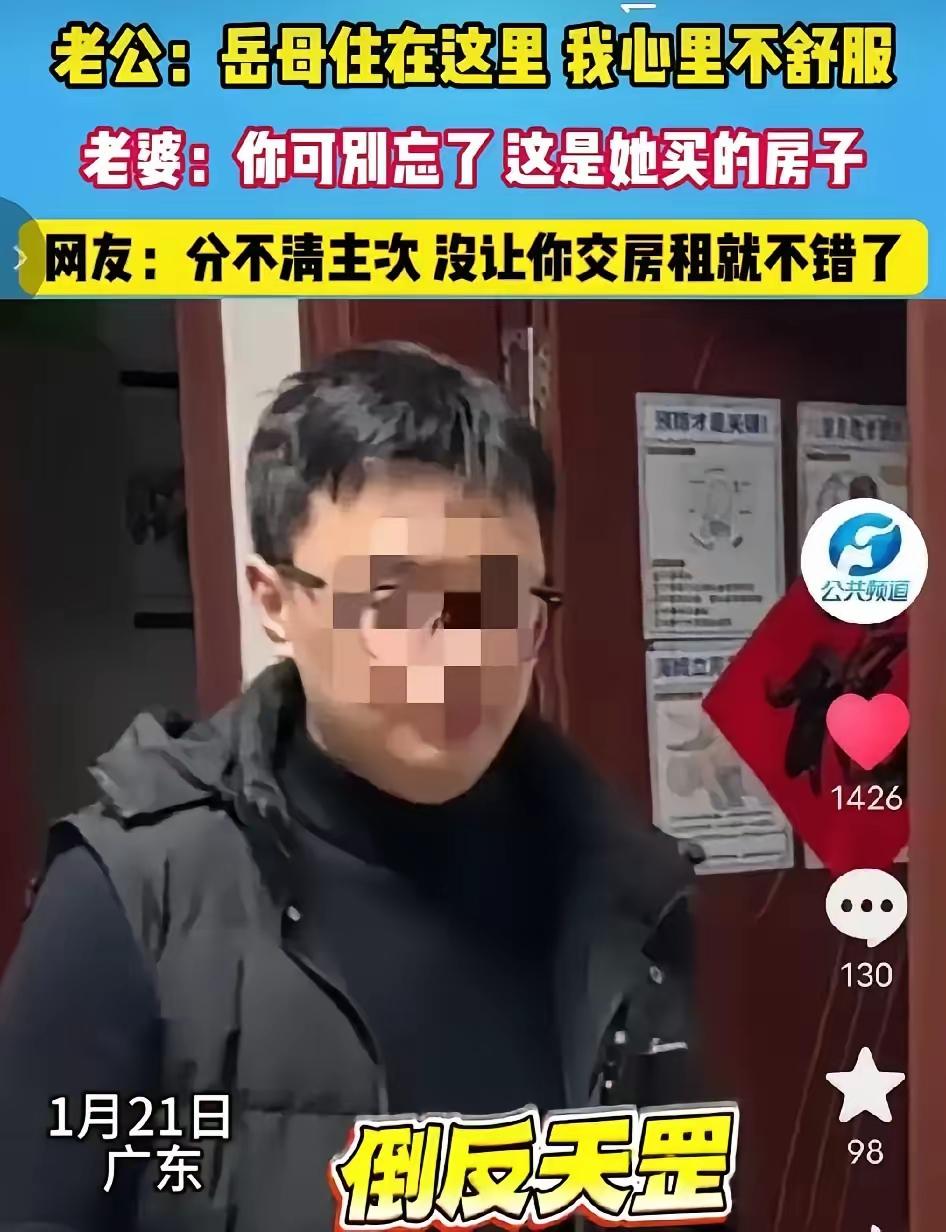 “空手套白狼?” 一男子,带着全家住进,岳母婚前全款给女儿买的房,男子大言不惭地说:“岳母住在这,我心里不舒服。” 这男的一家想吃老婆的绝户啊! 房子,是他老婆的爸爸妈妈婚前全款买的,还只写了女儿的名字,就为了给女儿的保证。 这女儿,一定要守住底线,千万别被几句甜言蜜语就哄骗了。 目前女儿的回复,还算拎的清:“你可別忘了 ,这是她买的房子。” 就如同网友说的:分不清主次。