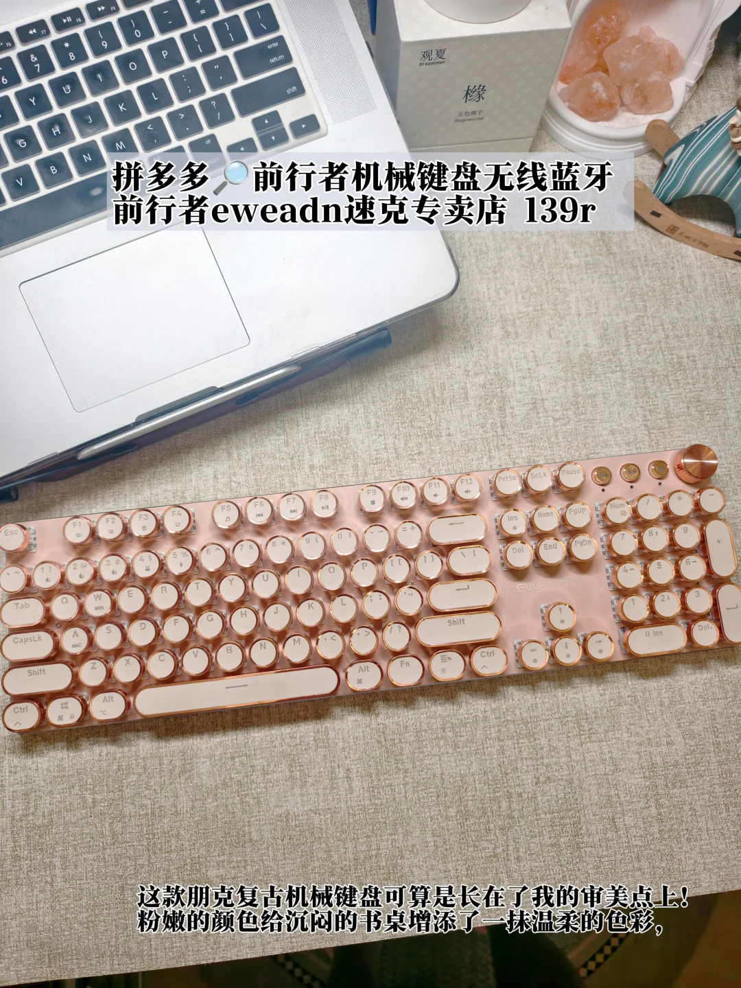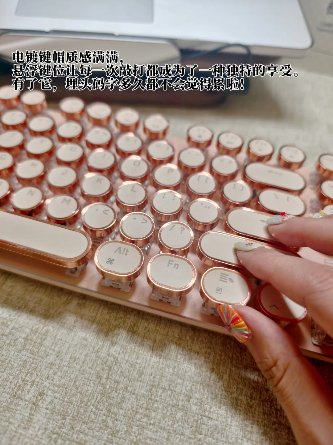 这款朋克复古机械键盘可算是长在了我的审美点上!粉嫩的颜色给沉闷的书桌增添了一抹温柔的色彩,电镀键帽质感满满,悬浮键位让每一次敲打都成为了一种独特的享受。有了它,埋头码字多久都不会觉得累啦!