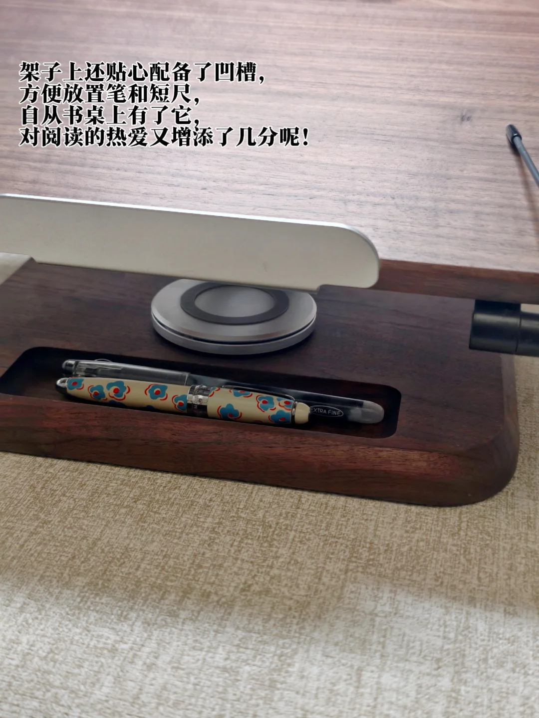 常在书桌前久坐的宝子一定要看一看这款阅读神器!实木的质地充斥着满满的高级感,可升降可旋转的设计更是贴合了不同身高不同坐姿习惯的宝子不同的阅读习惯,架子上还贴心配备了凹槽,方便放置笔和短尺,自从书桌上有了它,对阅读的热爱又增添了几分呢!