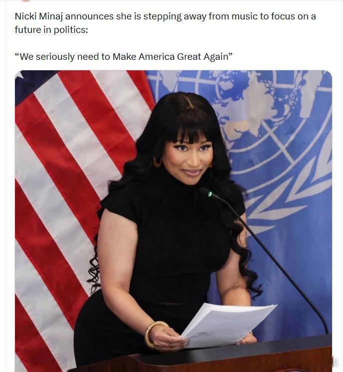妮基·米娜宣布她将暂时退出音乐界,专注于未来的政冶事业:“我们真的需要让美国再次