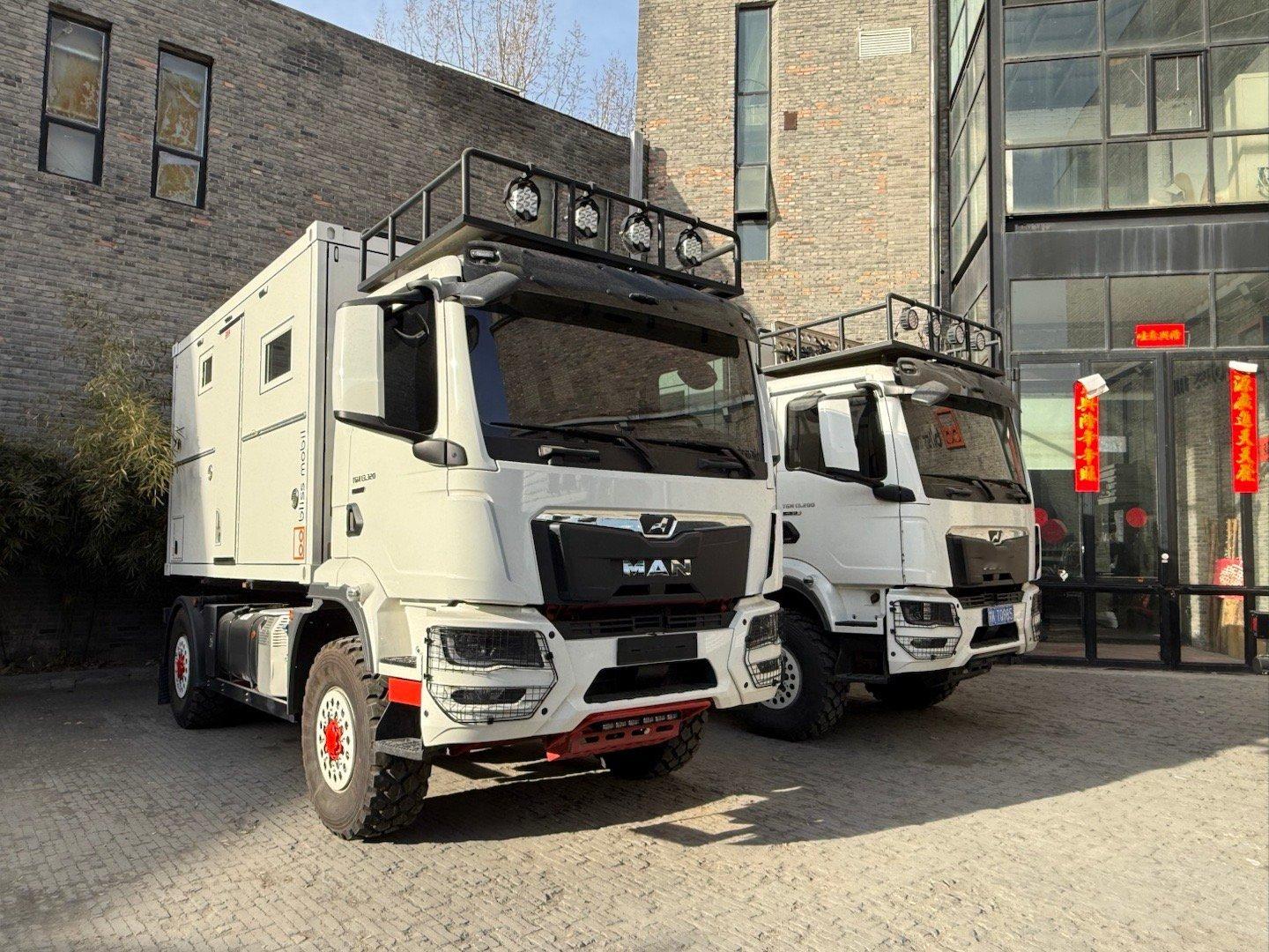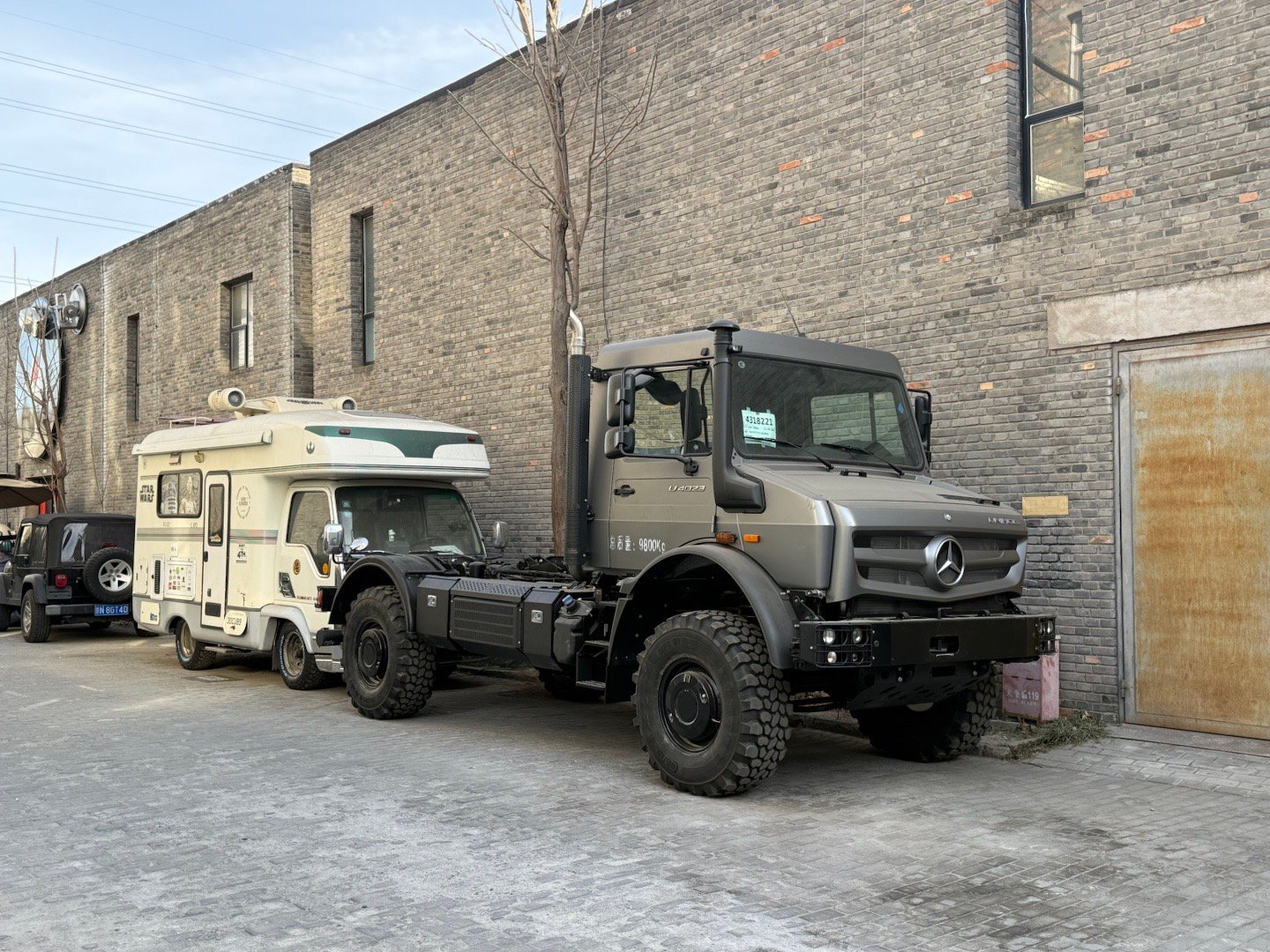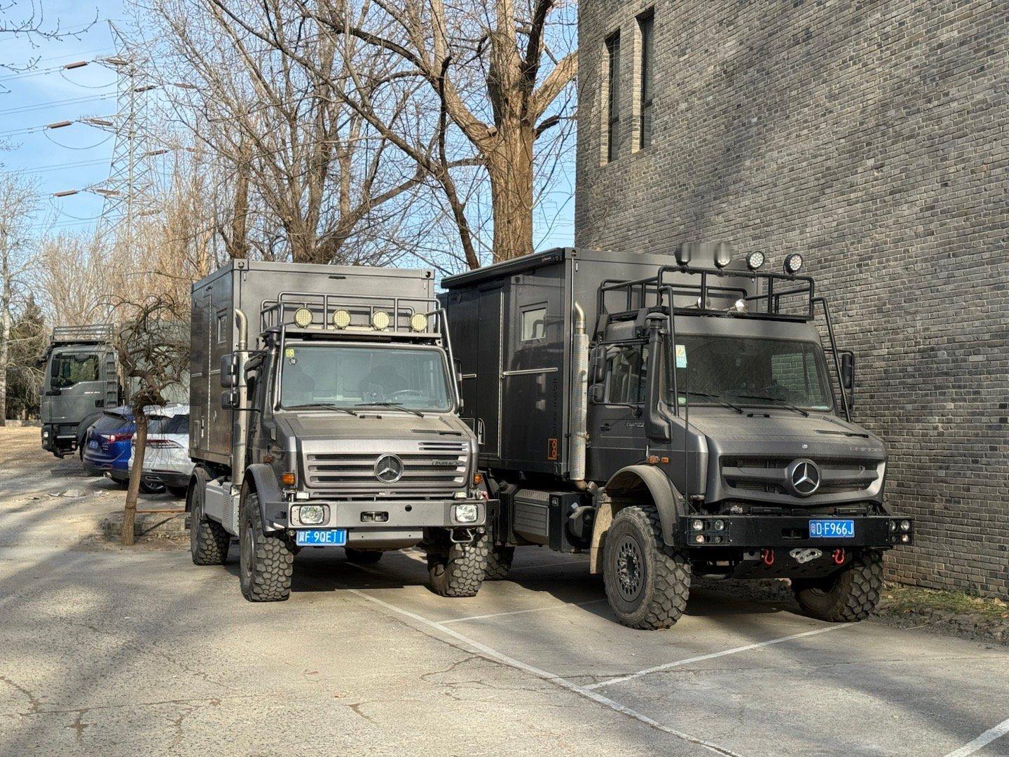 感觉我邻居宝峰玛丽亚的BM房车今年这生意真不错啊…一院子新车。这双排座的乌尼莫克还真是第一次见,好帅 北京·四万车库