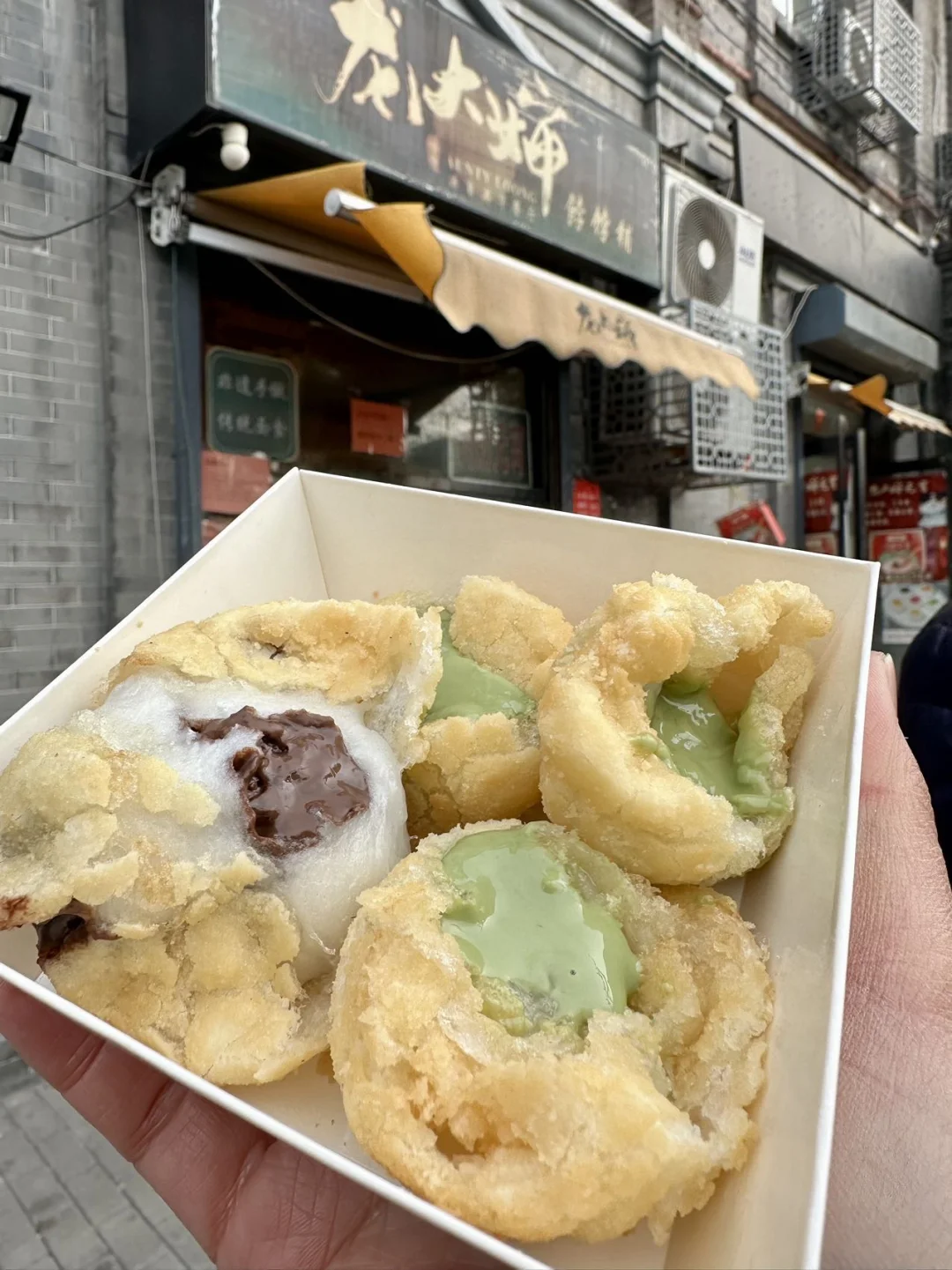现场现炸元宵,外皮炸得金黄酥脆,咔嚓掉渣,焦香混着甜香,比煮的香翻倍