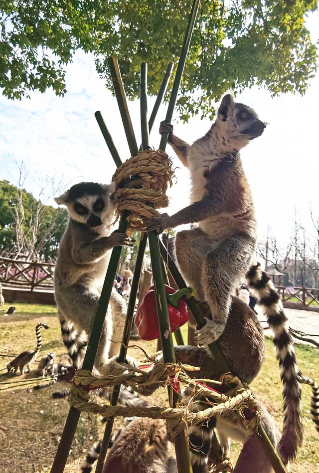 环尾狐猴春节来一场爬塔比赛。陈玺撼摄
