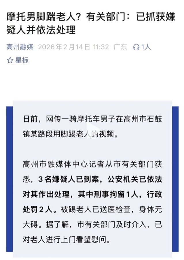 骑摩托踹倒拾荒老人1人被刑拘 这就是不懂事的孩子调皮,确实有些过分了,被刑事拘留和行政处罚也应该!以前十几岁左右的孩子会出现这样的问题,能够刑事拘留说明已经成年了,那就不应该。这样的孩子往往家教不好,家长应负相应责任。刑事拘留对男子的以后影响很大,无论考公考编当兵都受影响。