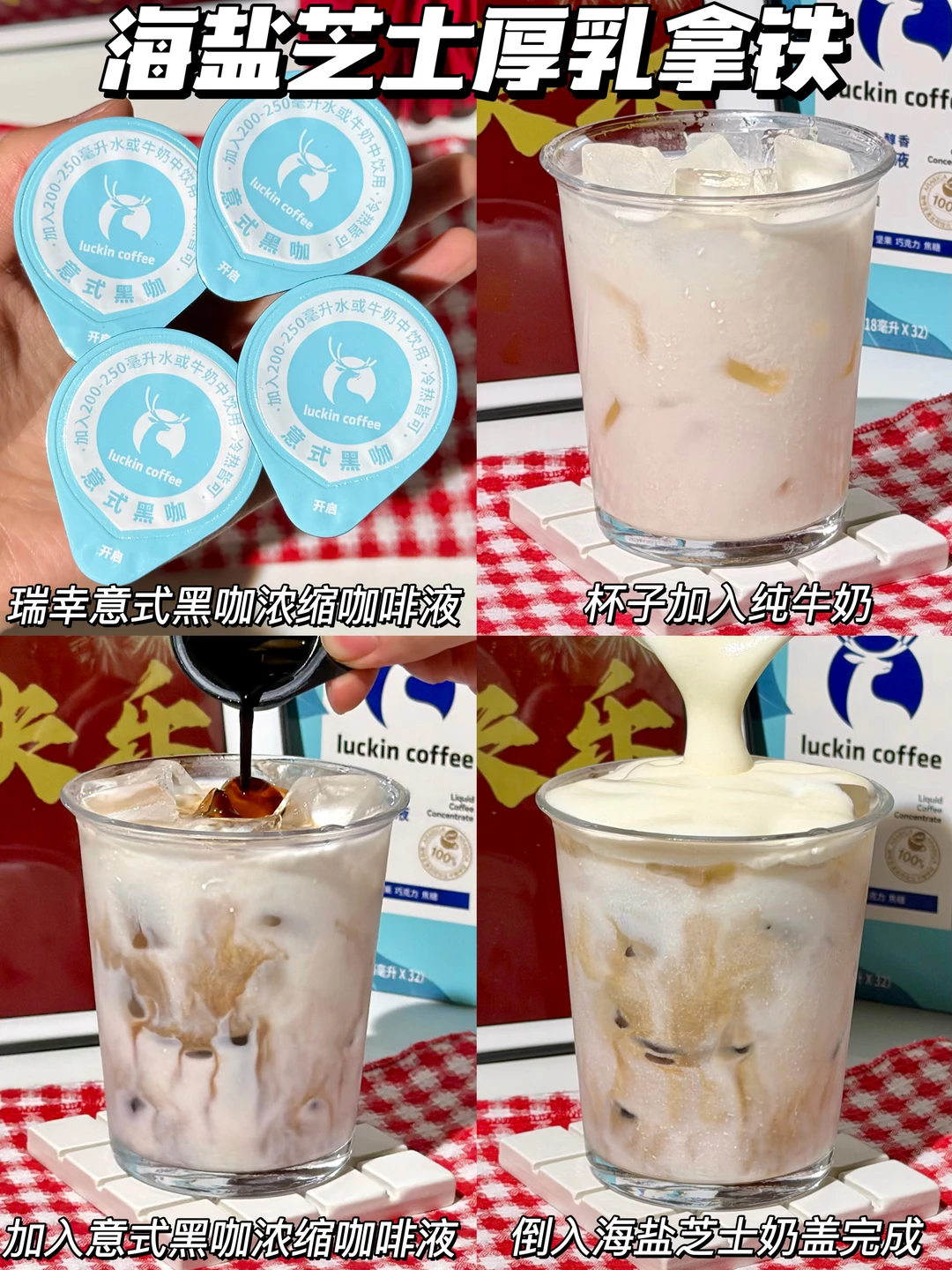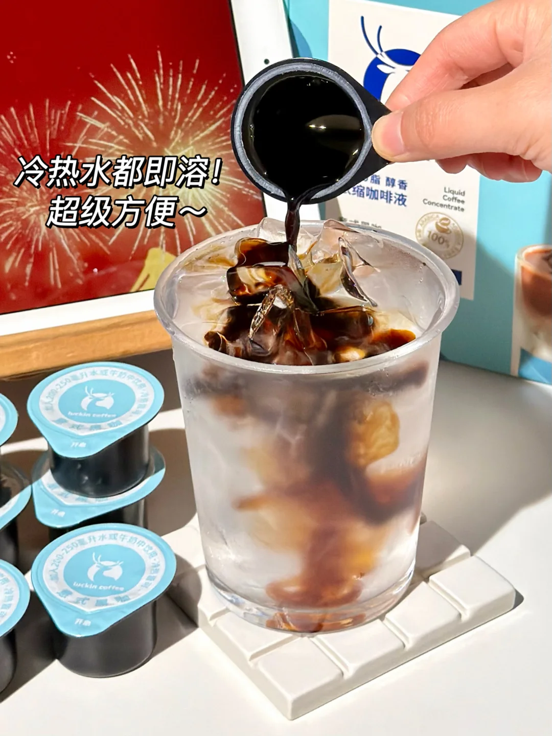 2️⃣ 倒入1颗瑞幸咖啡液