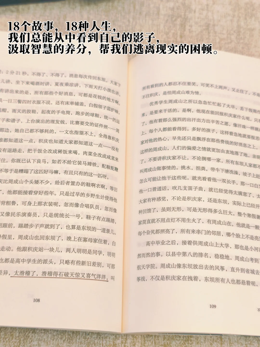 “不同的生活百态,相同的悲欢离合。书写岁月风景、久违的温暖故事,走过生命的万水千山,看见最卑微者的梦想之光。”18个故事,18种人生,我们总能从中看到自己的影子,汲取智慧的养分,帮我们逃离现实的困顿。