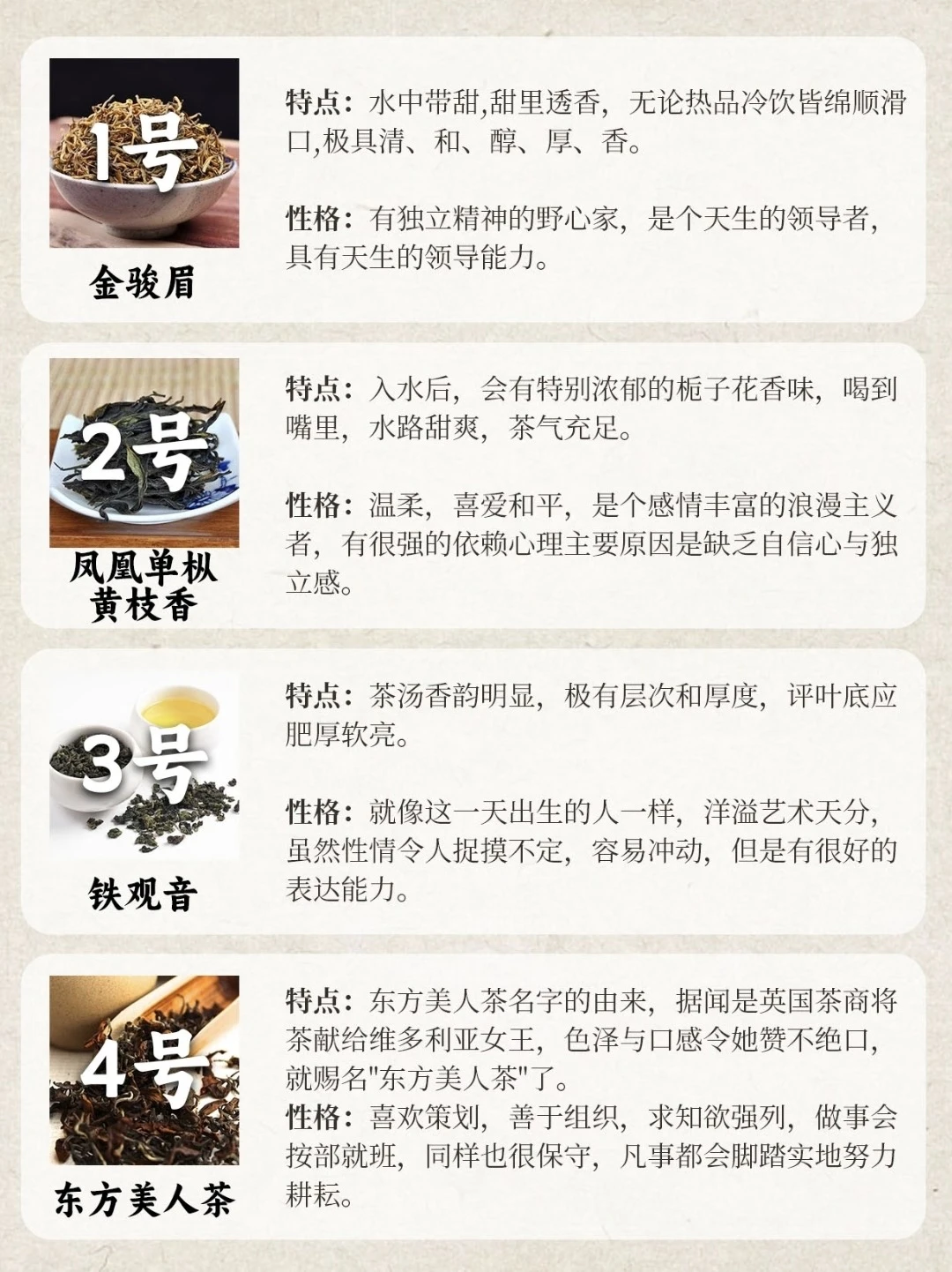 每个人的生日,都藏着专属茶香!出生日期不同,匹配的茶品也不同,快来找找你的幸运茶吧。