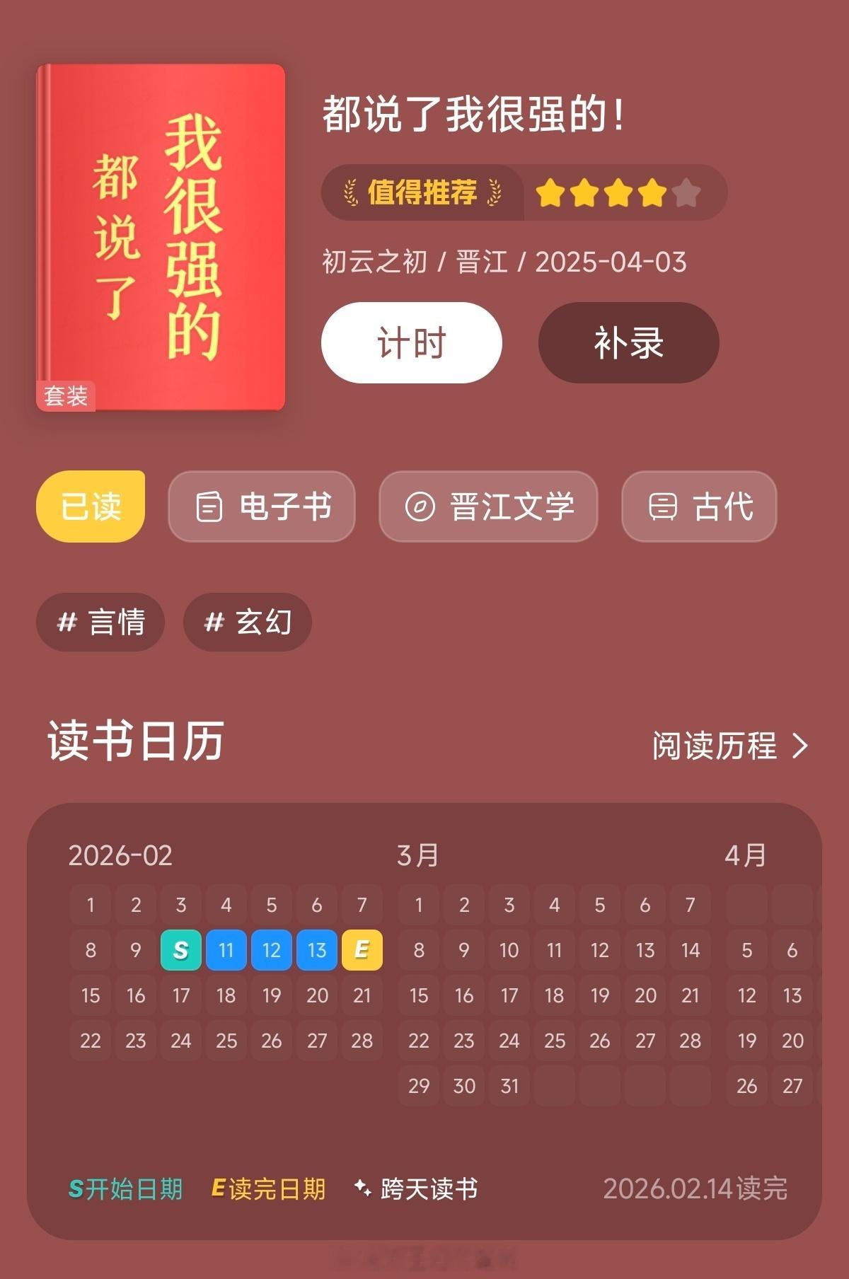 【561】《都说了我很强的!》作者:初云之初(晋江VIP2025-4-3完结)【标签】古代 玄幻 【CP】还是第一部的女主,但是穿越了,男主没跟来,虽然是言情,但是这一部无CP【推荐指数】★★★★☆【简评】 第一部有点失望,但这一部很不错!【第一部书评】网页链接