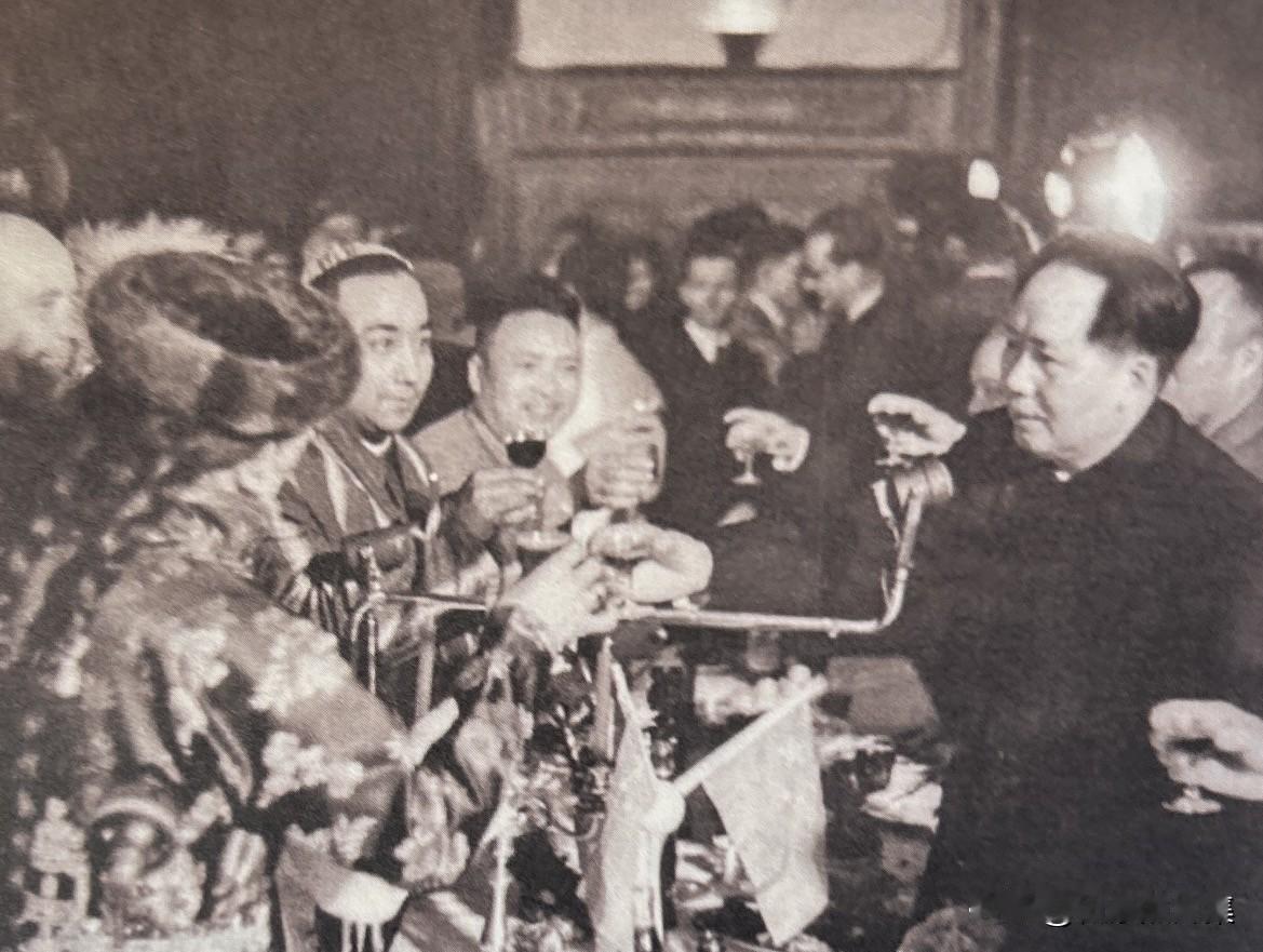 1950年,在国庆一周年招待会上,毛泽东主席向少数民族代表敬酒的老照片。当时共有来自43个民族(含支系)的158名代表,以及222名文工团员,组成了新中国第一个全国少数民族参观团。他们中既有土司、头人、活佛,也有农民、学生和干部。此次活动成为全国少数民族参观团制度的开端,作为党的民族工作的优良传统延续至今。