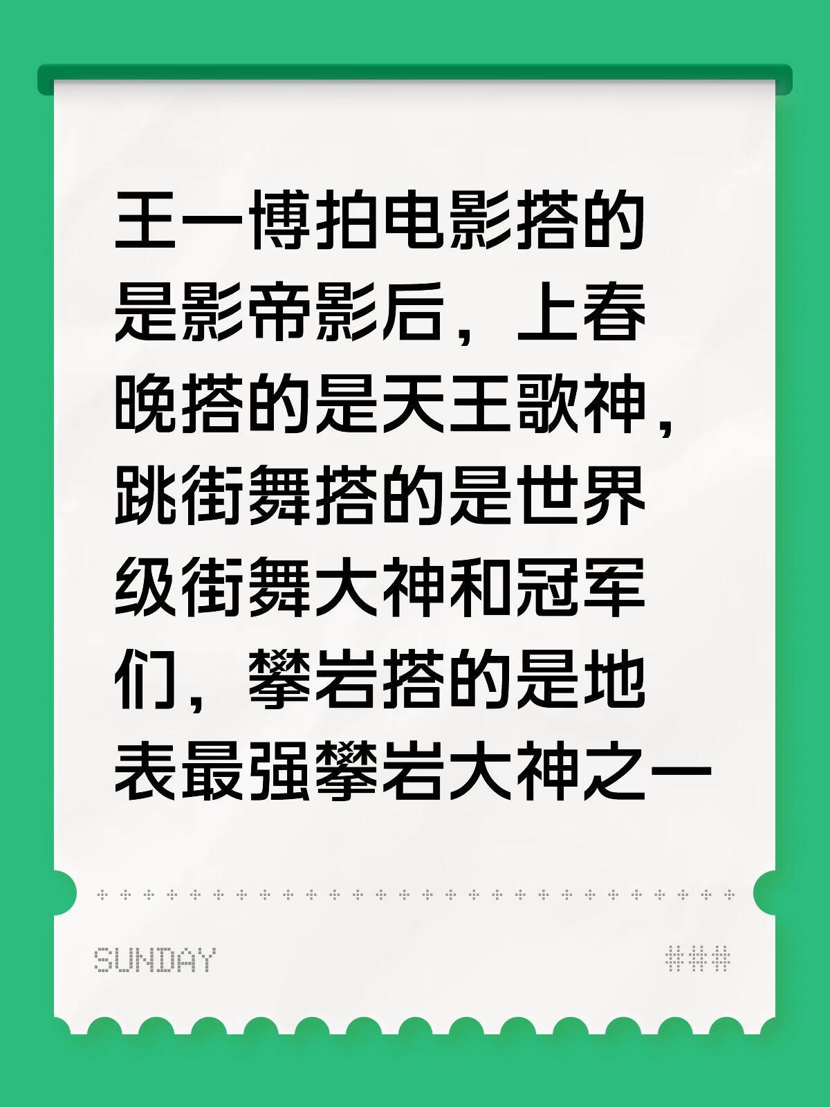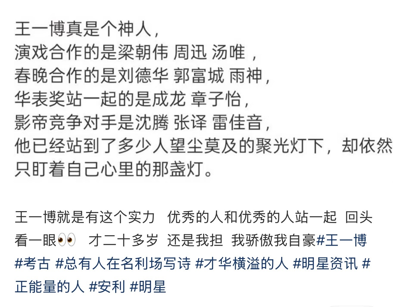 王一博和所有行业top、大神合作的原因是因为他自己实绩很强,业务能力强,国民度高,流量大,形象好,海外也有知名度……一句话概括:年纪小,咖位大