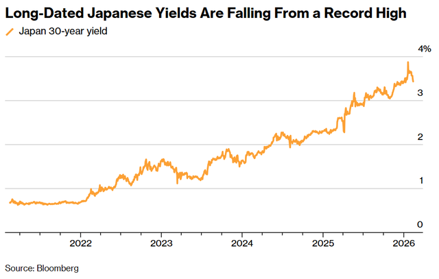 不过,自高市早苗提前大选以来,日本债券市场和日元大幅走强,30年期日本国债收益率在不到一个月内下跌约40个基点。
