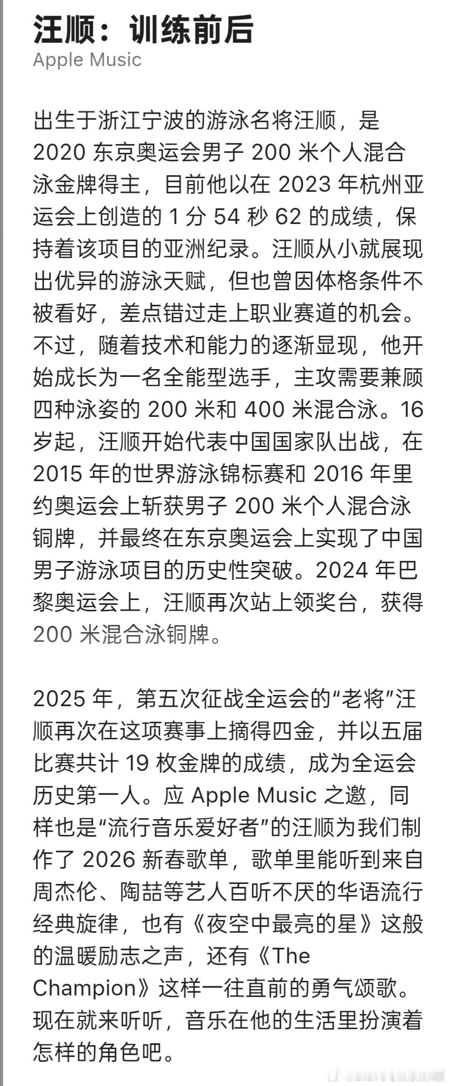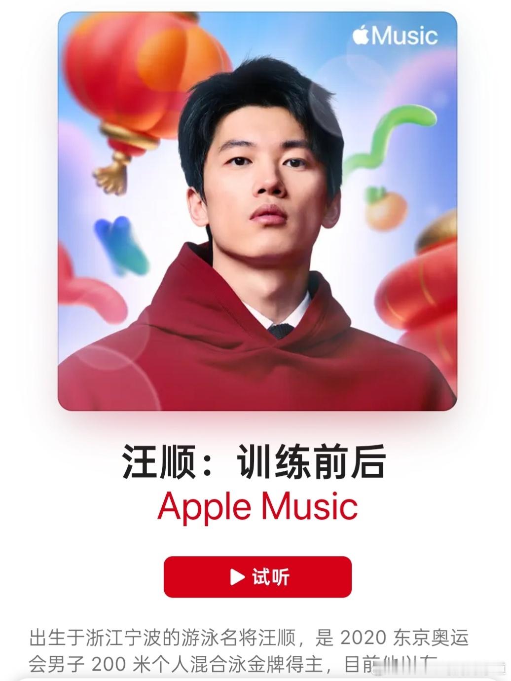 汪顺的2026 🎶汪顺的Apple Music 训练前后歌单及采访|Apple Music发布的训练歌单、简介、以及采访。并希望在2026农历新年之际,借由这张歌单为大家送上新一年的祝福和寄语。网页链接