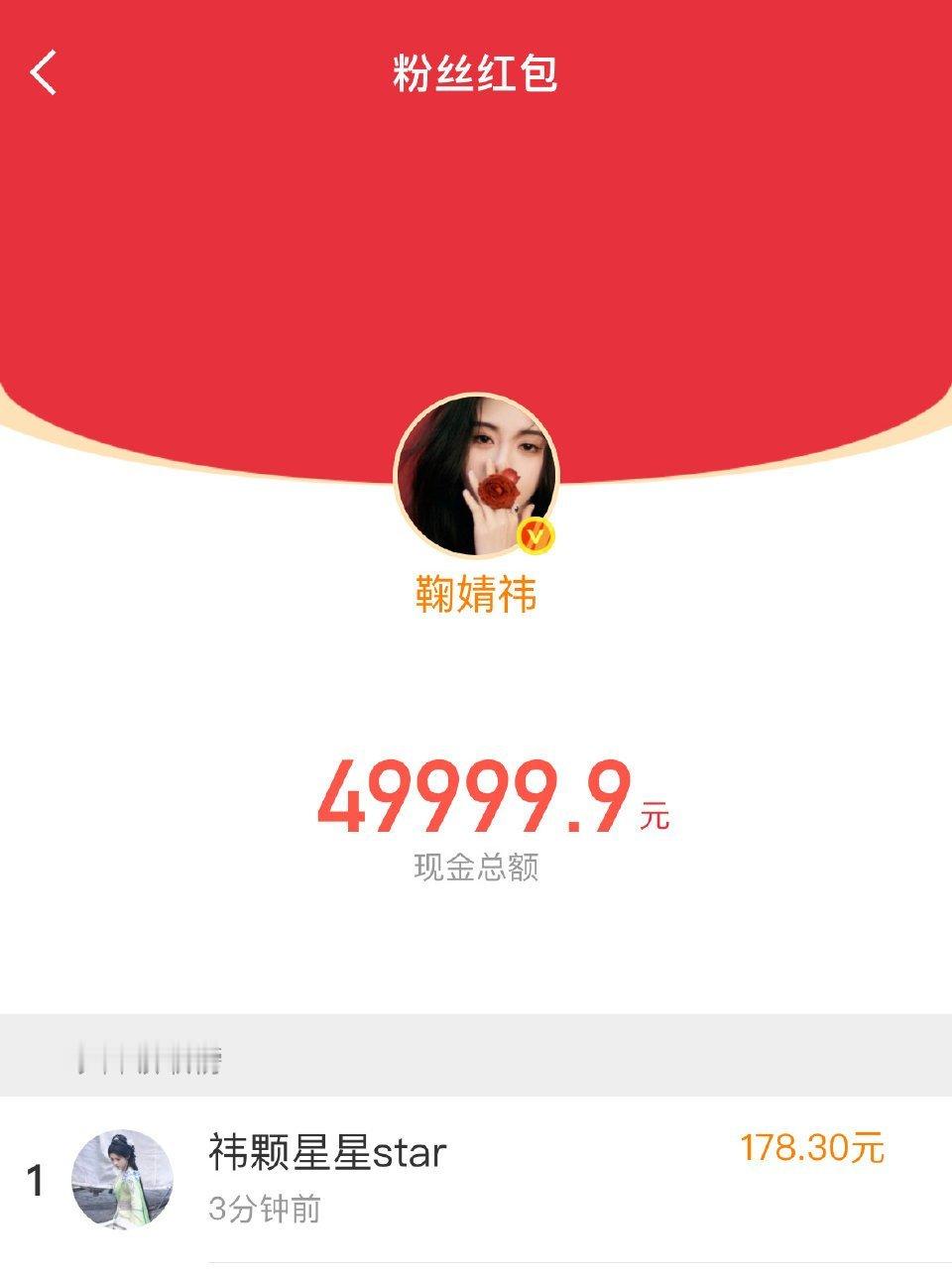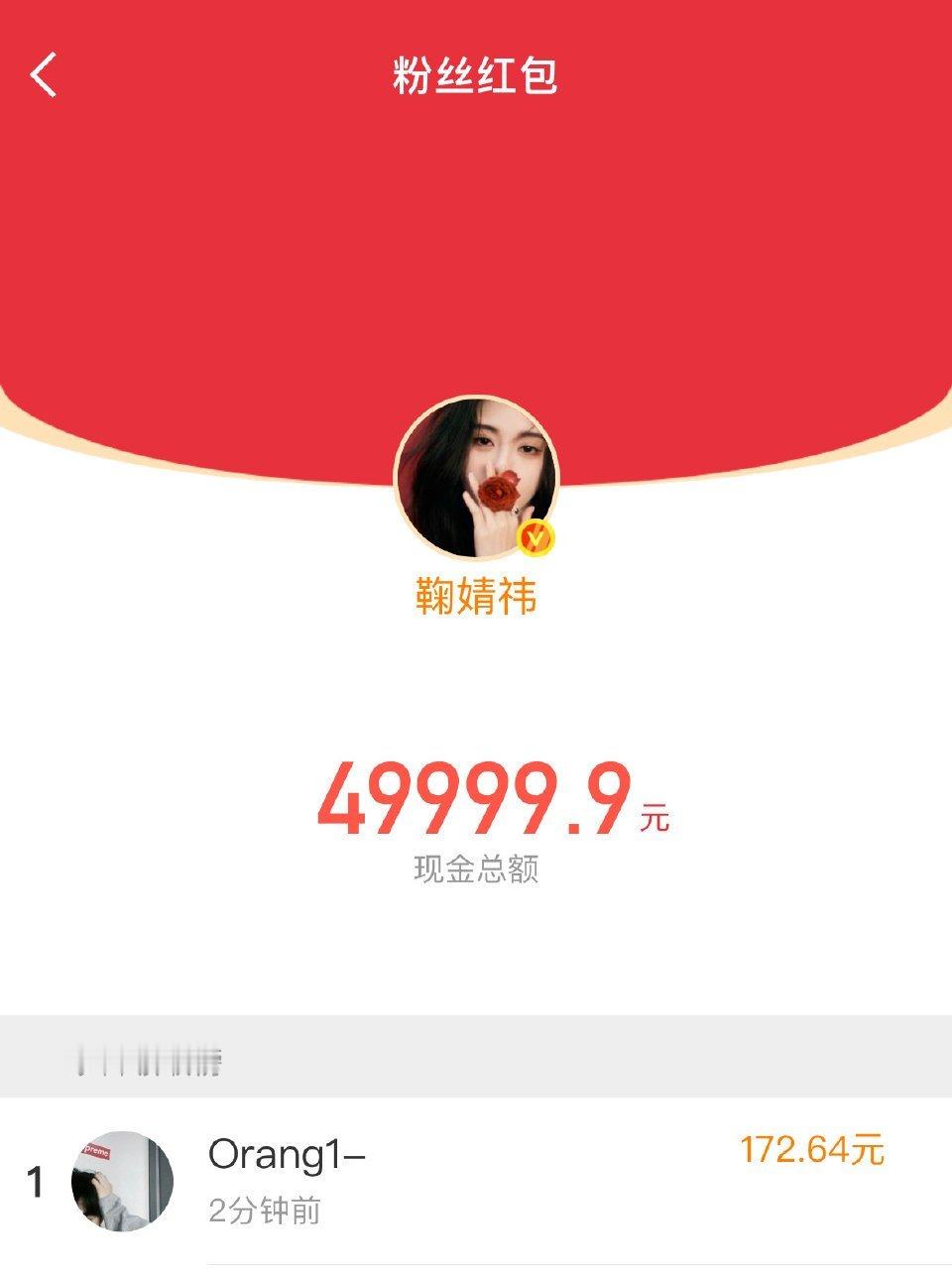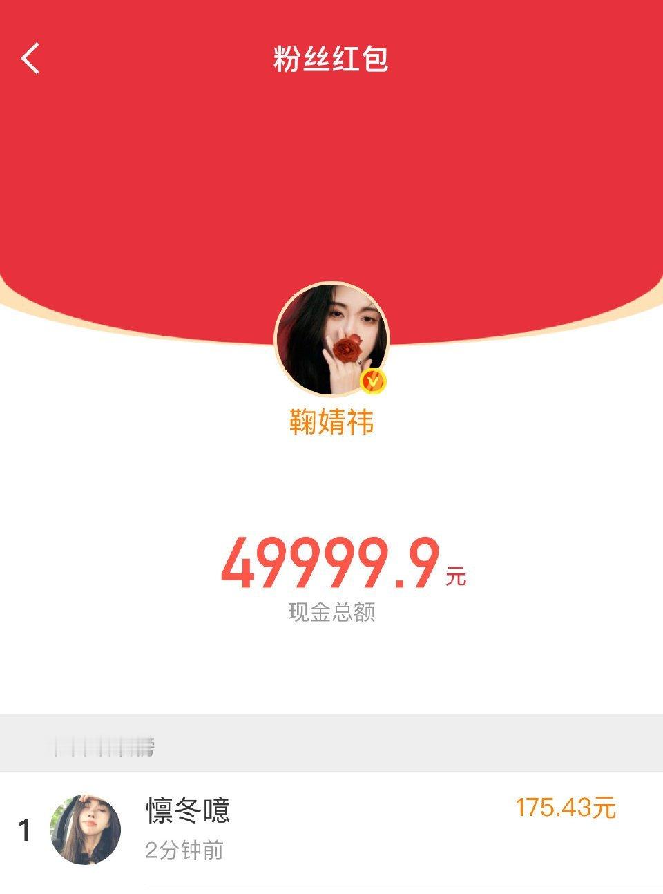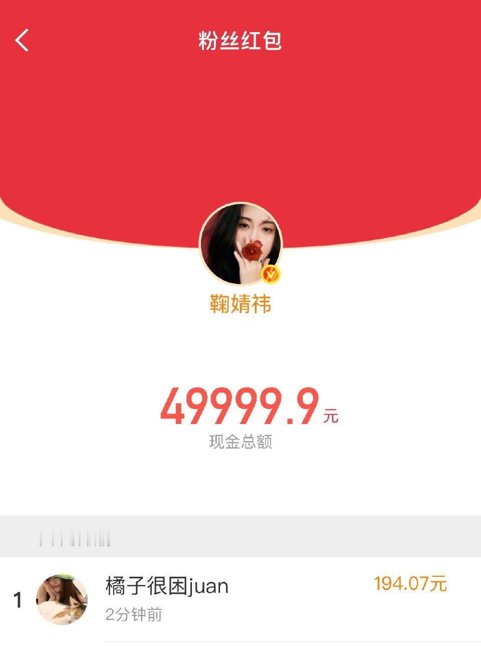 鞠婧祎20万红包鞠婧祎连着发了四个5w的红包..