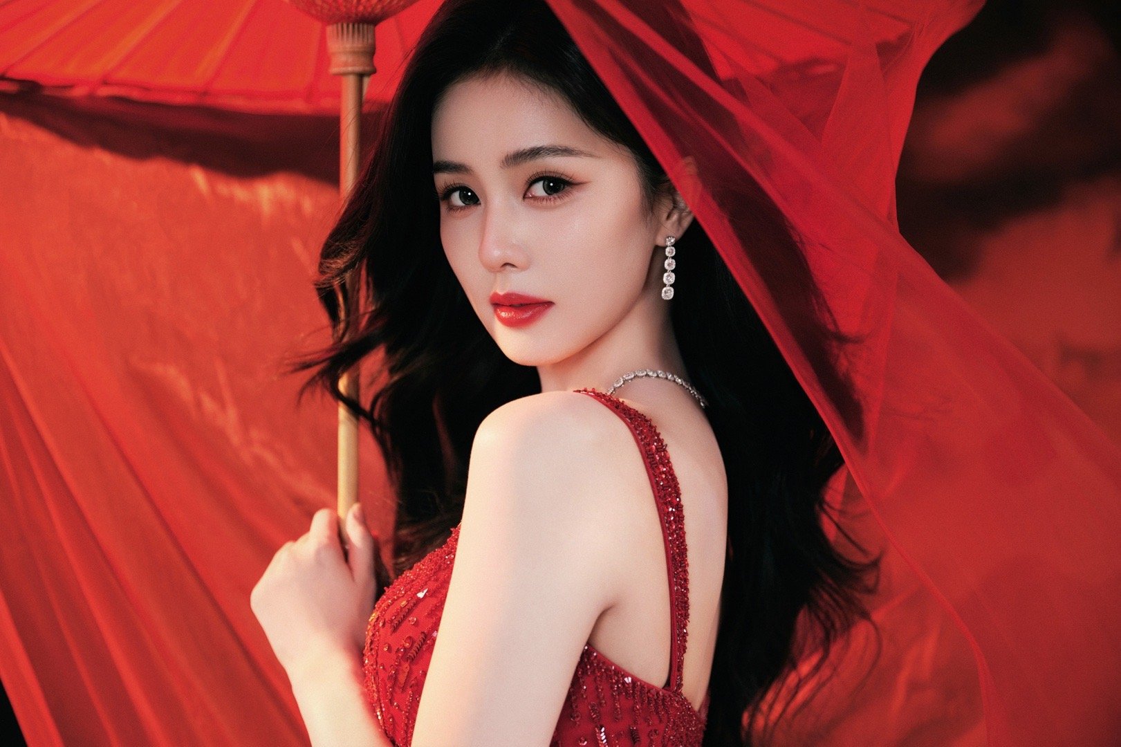 一袭钻饰吊带长裙出镜,将亮相央视总台2026春节联欢晚会,红韵相映,美丽明艳的东方美人,共启锦绣新春🌺春晚 新春茶话会