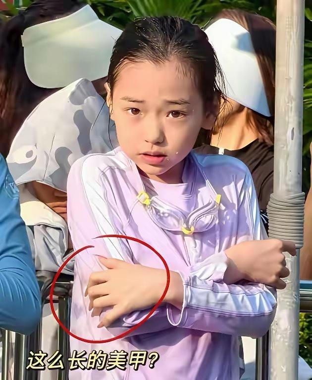 9岁小酒窝做这么长的美甲吗?娃这手看着都有点不像她这个年龄的啊?董璇高云翔不管的嘛?