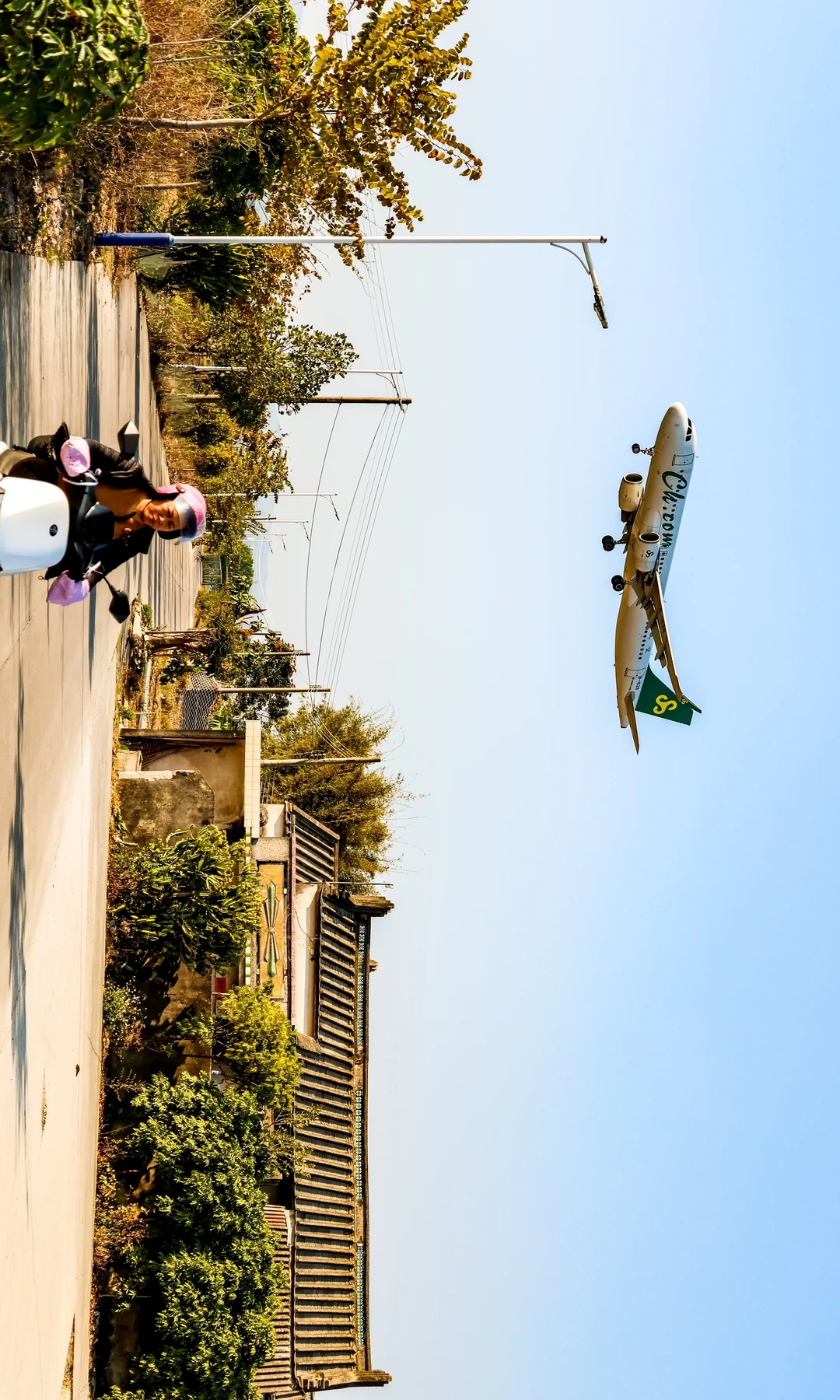 1️⃣导航到揭阳洋淇村世界中心,这里能很近距离看到飞机降落的角度,手机也可以拍到(图3角度),还可以拍到和老房子同框的视觉。这里最近开了很多格桑花💐,也有很多人拍飞机和花同框的照片