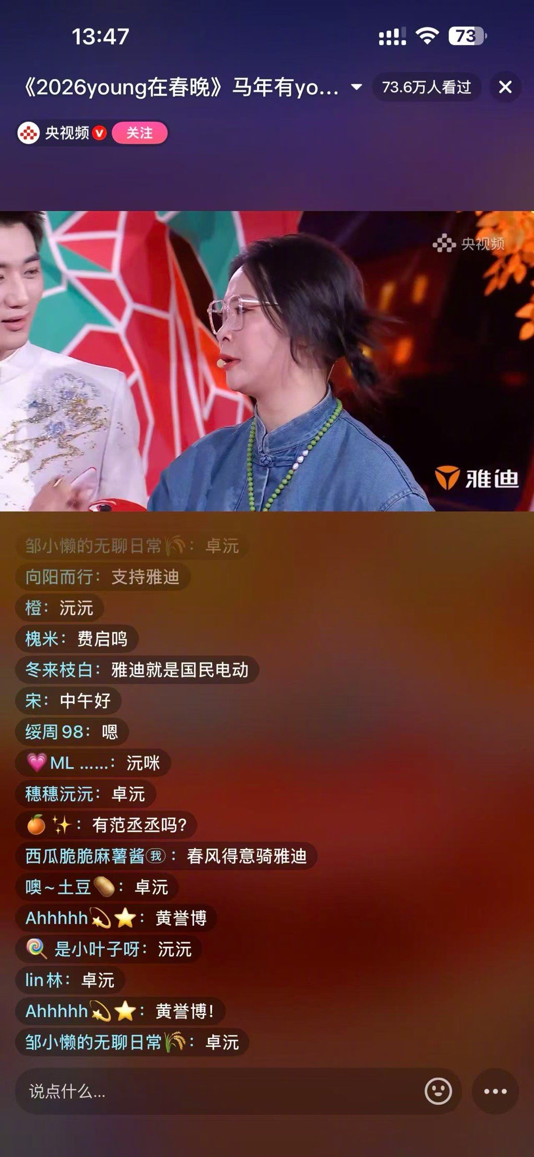 大年二十九下午刷由雅迪全球独家冠名的《Young在春晚》,本来是冲撒贝宁和御剑飞