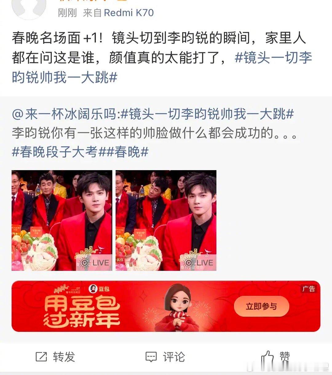 李昀锐的实时,春晚镜头下的他很惊艳吗?李昀锐内娱舒肤佳