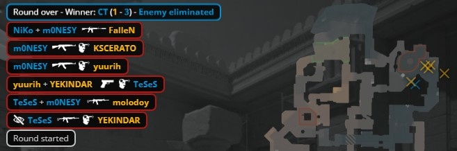 第12回合孩神大狙水下双杀,Niko后撤步M4轰掉教父,双方以6-6结束上半场。