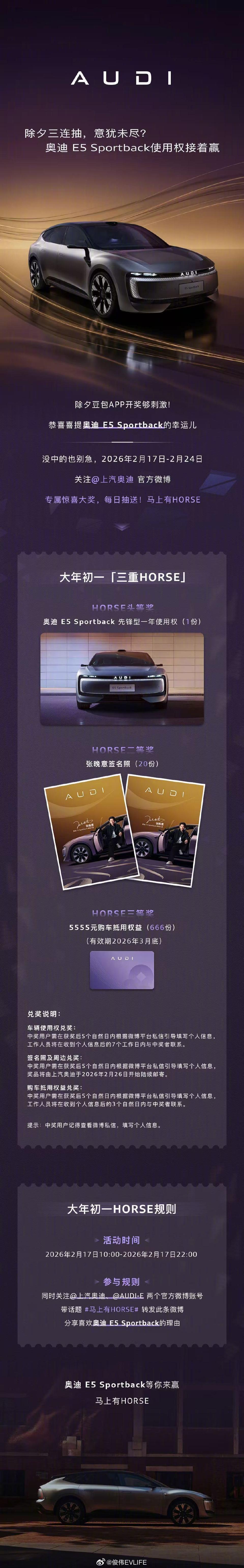 年夜饭上抽中年度猎装轿跑引爆全网除夕夜豆包送出的奥迪E5Sportback大奖直