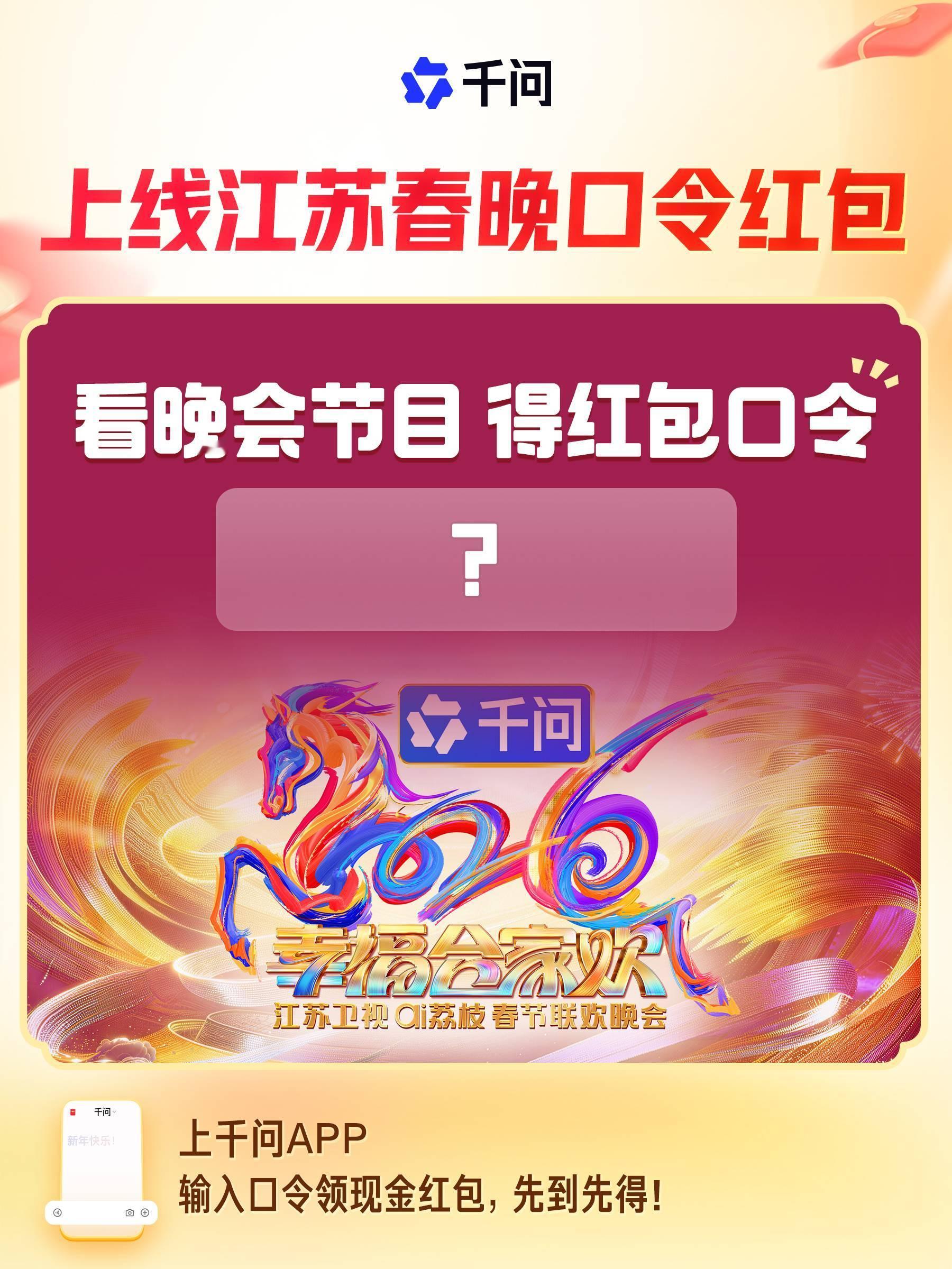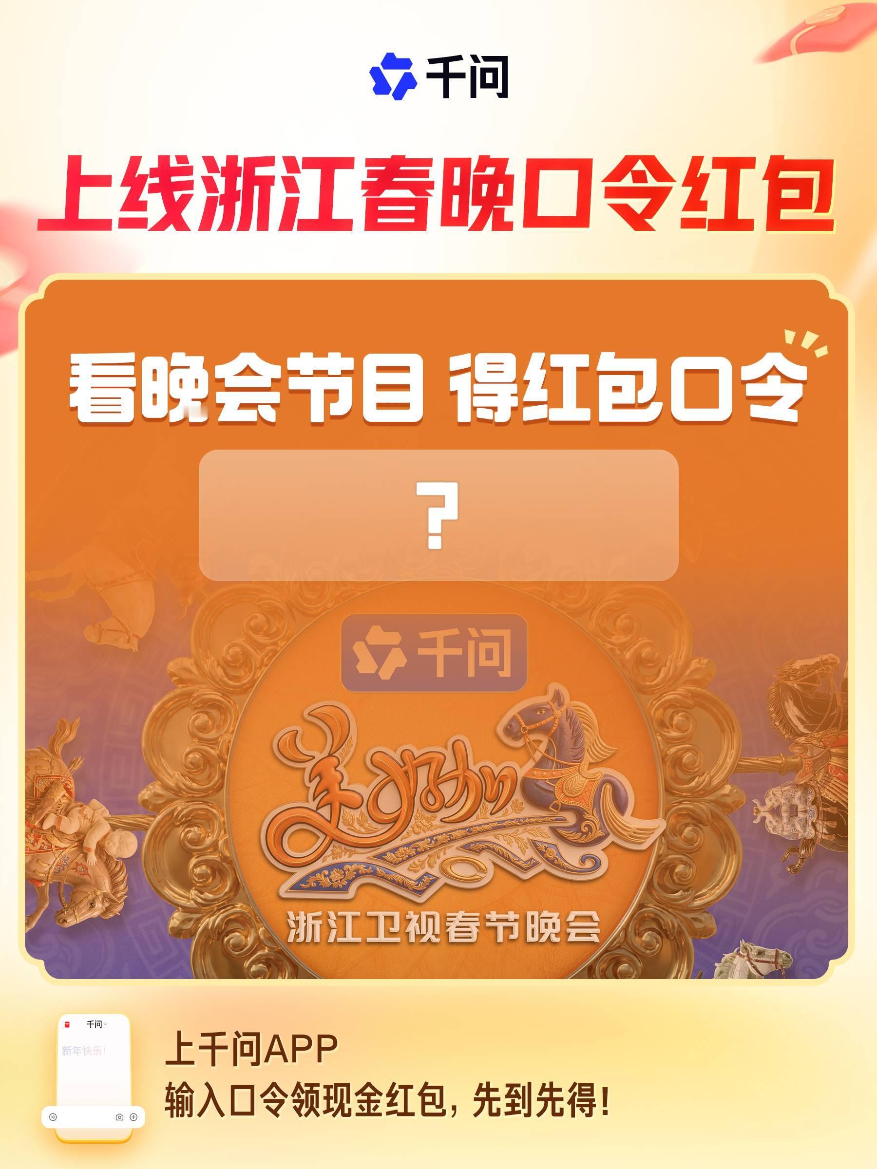 已收到线报!前方一大波千问红包来袭!! 千问江浙沪春晚给你发红包 🧧江苏、浙江、东方卫视春晚的口令红包也要来了,我看从2.14就开始全网通知了,金额据说很可观!就是想获取口令,得蹲住这三个春晚才能get!已经给我家人下发各自的任务了,我爸看江苏,我妈看东方,我看浙江+输入口令领红包~千问没有免单卡也能天天减免